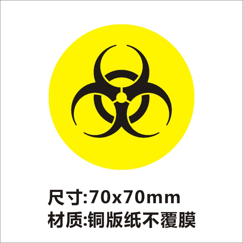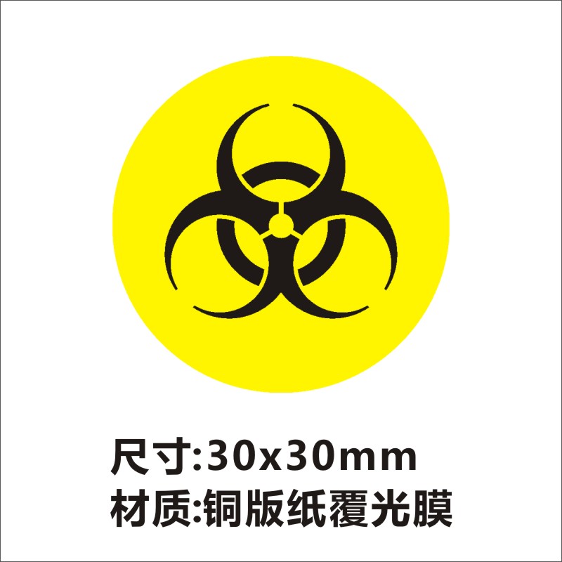 生化标志标签贴贴纸不干胶标签印刷圆形危机警示生化危险可定制