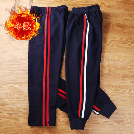 儿童校服园服运动裤冬装中学小学生裤子二红白杠男童女童加绒加厚