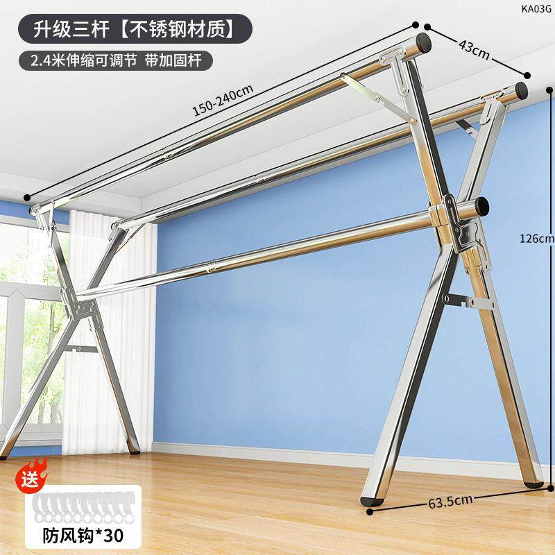 晾衣架室落地台折WL-92810叠内家用阳室卧不锈钢室外凉伸缩杆式晒