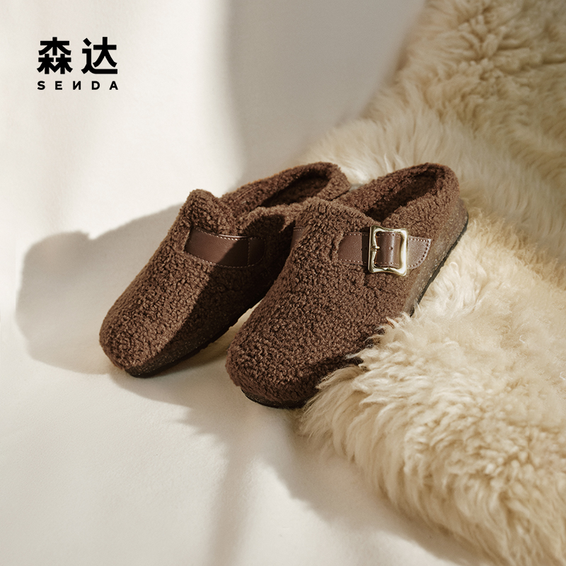 森达毛毛鞋女子年春秋新居家外穿保暖毛绒勃肯拖鞋ZCC73CH4