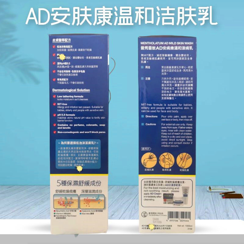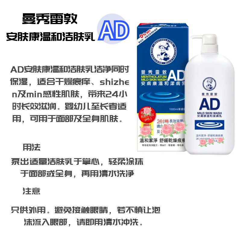 香港购曼秀雷敦安肤康AD温和洁肤乳低敏沐浴露保湿止痕痒舒缓干燥
