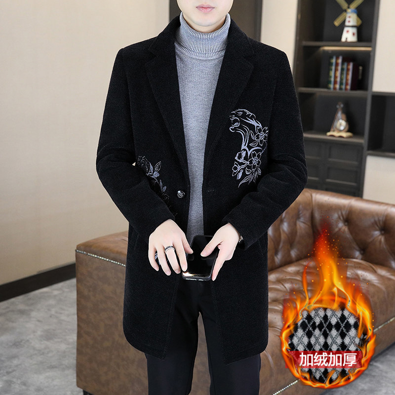 2025毛呢大衣男仿皮草韩版休闲加绒加厚金貂绒风衣冬季呢子外套