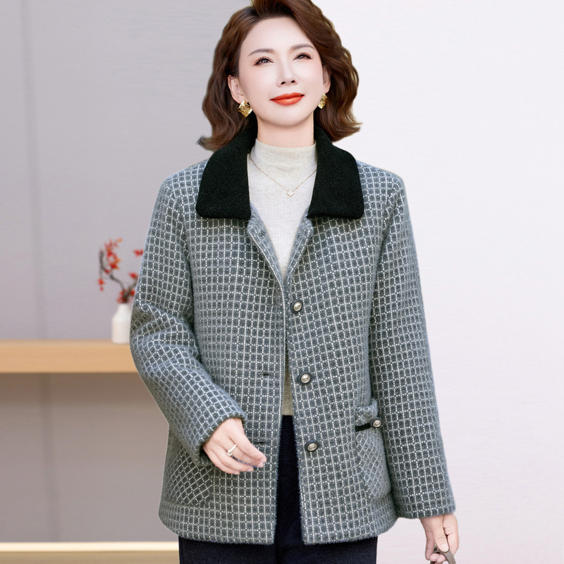 时尚妈妈秋冬季加绒加厚水貂绒外套短款女新款中老年洋气毛呢上衣