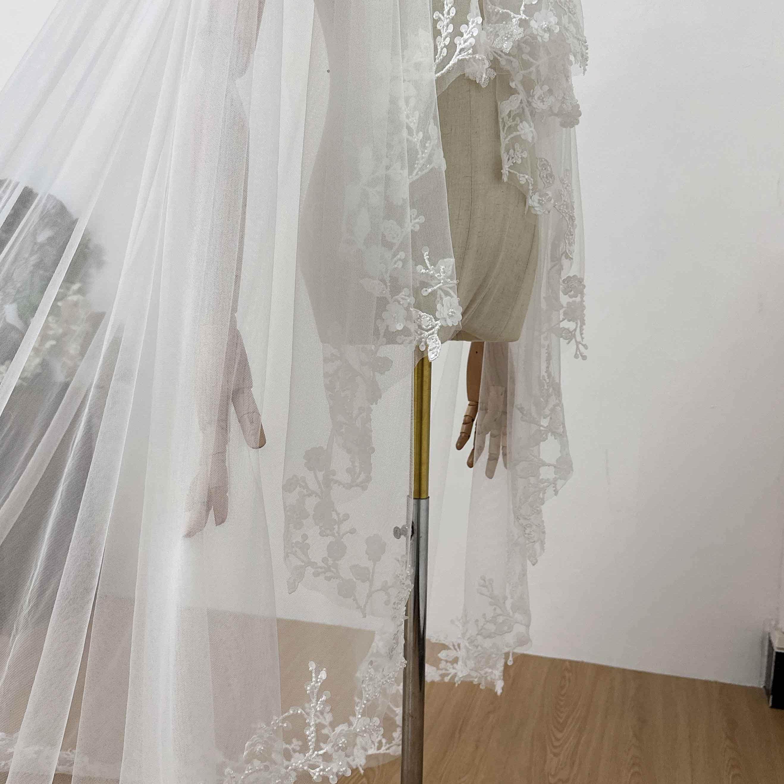 新娘结婚重工钉珠蕾丝头纱