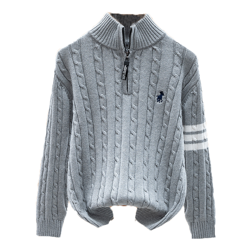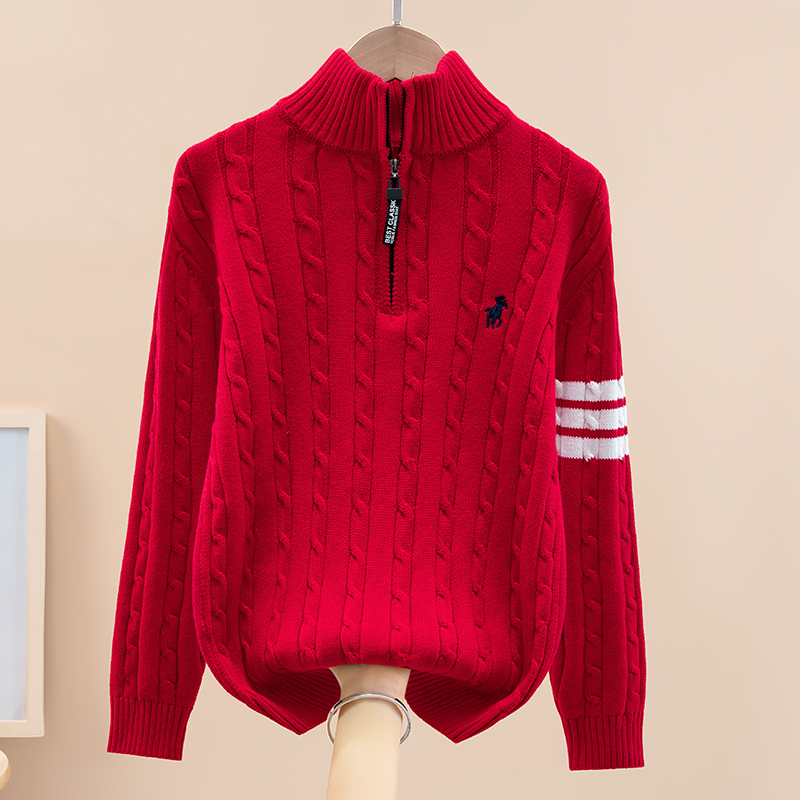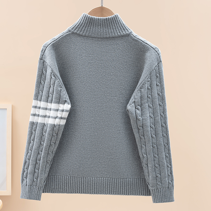 男童毛衣新款儿童加绒加厚纯棉针织衫中大童男孩立领拉链打底衫潮