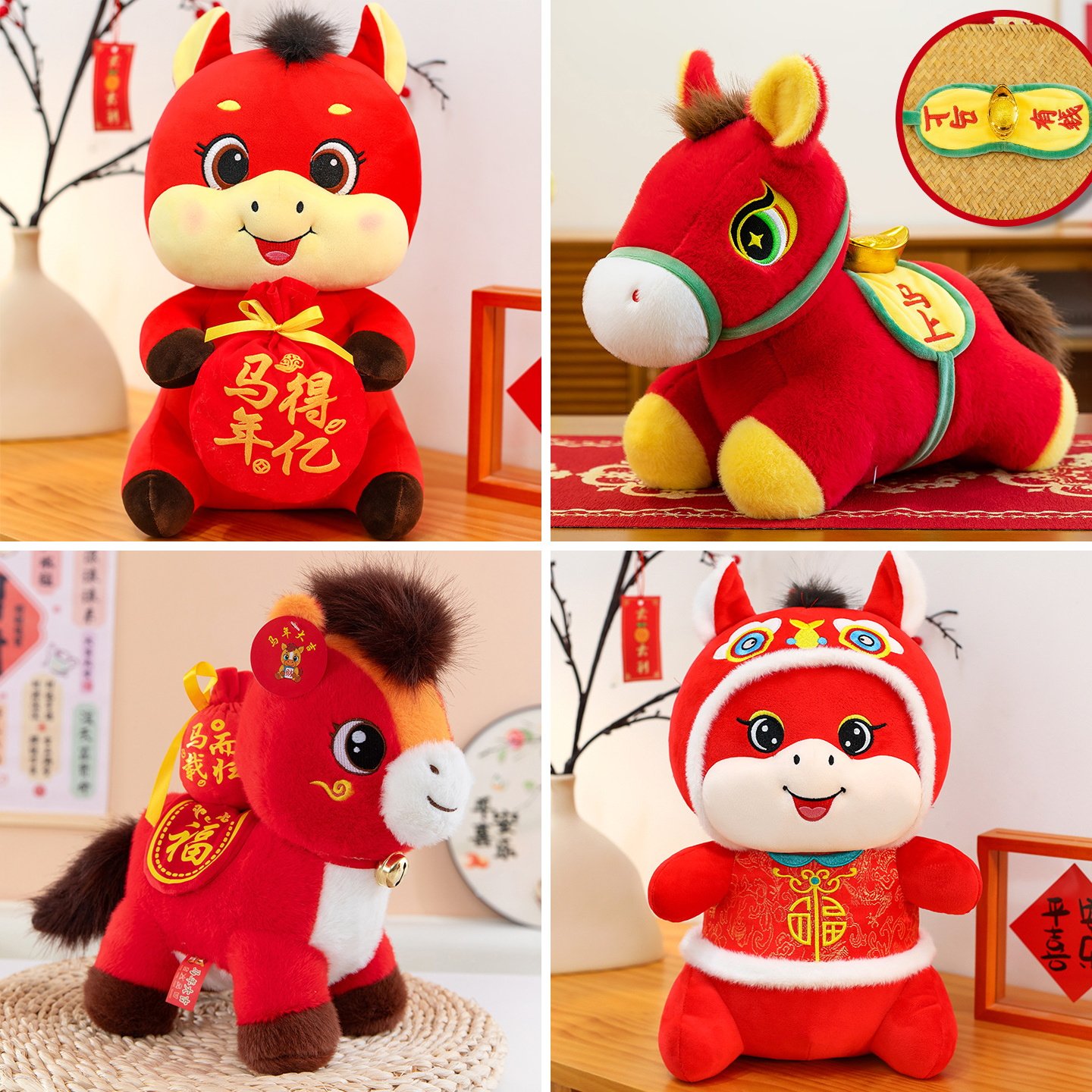 马年装饰挂件全家福学生元旦表演拜年视频新春节拍照道具中国结福