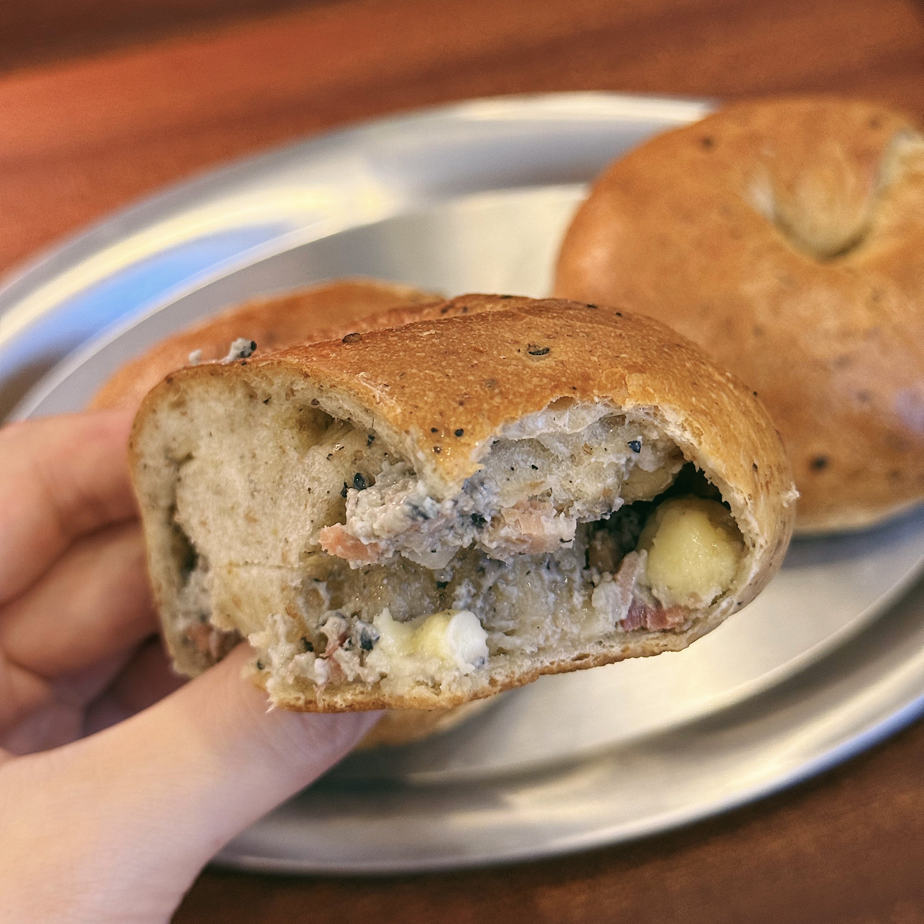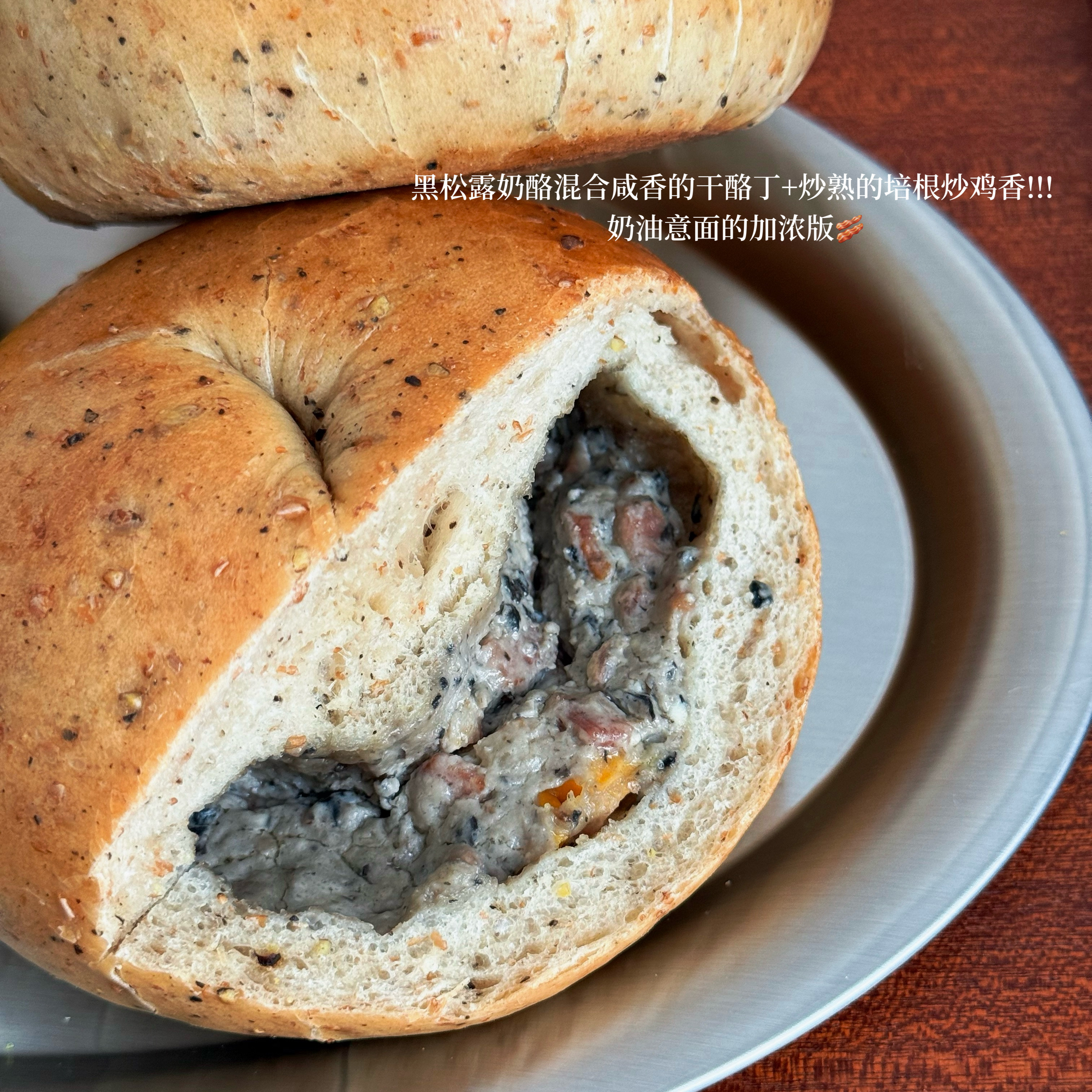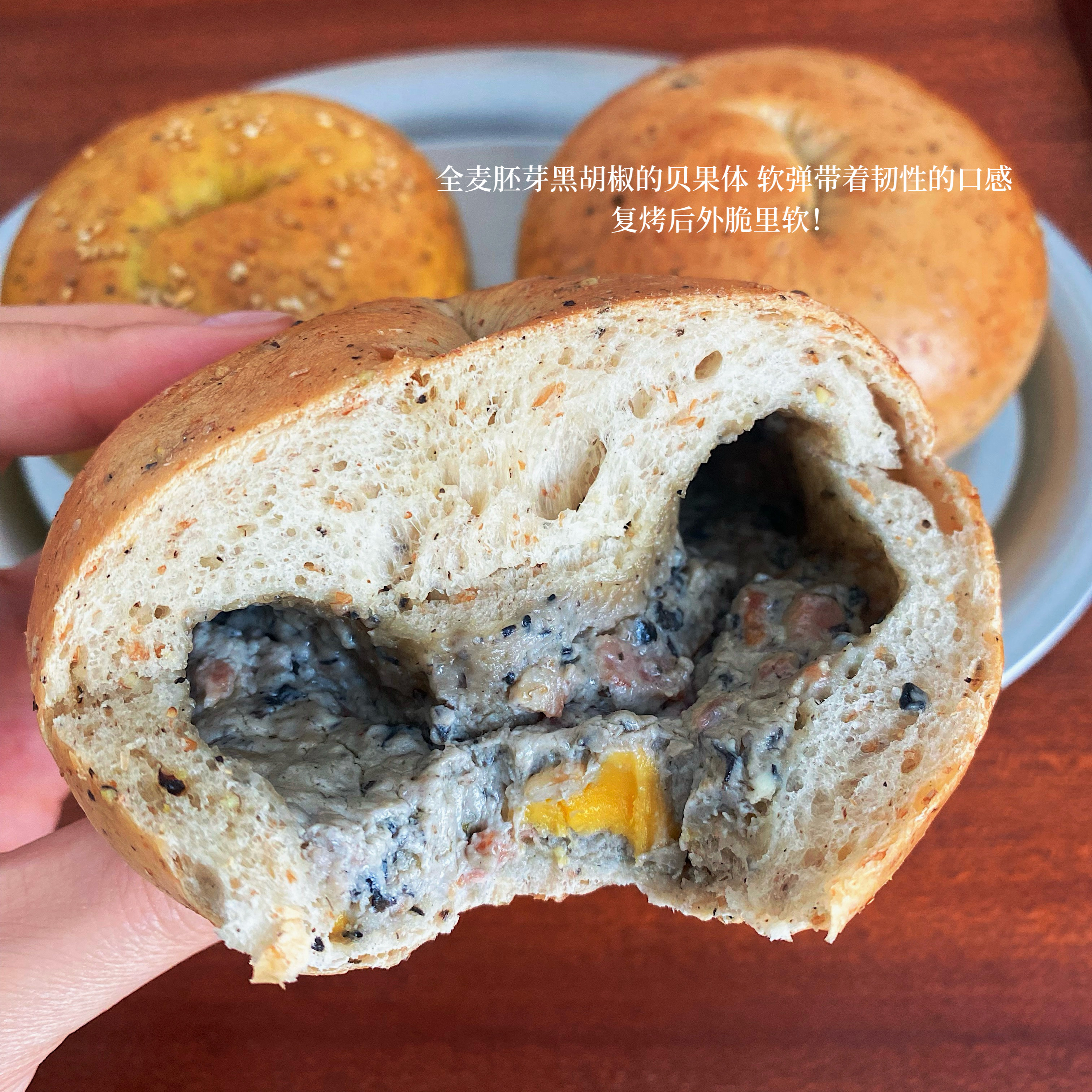 小春日食 全麦黑松露干酪培根奶酪贝果咸口早餐面包下午茶