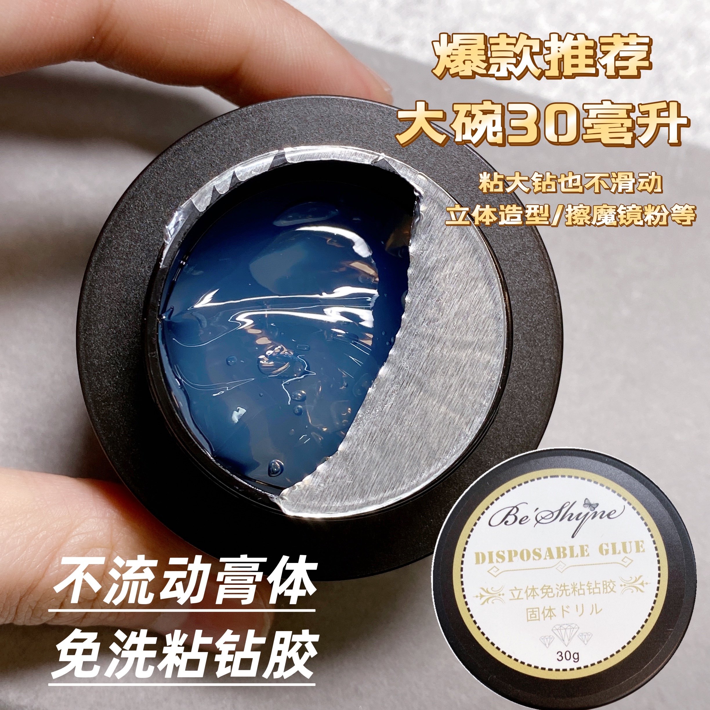 美甲粘大钻真的不流动固体免洗粘钻胶比思爱立体造型超大碗30毫升