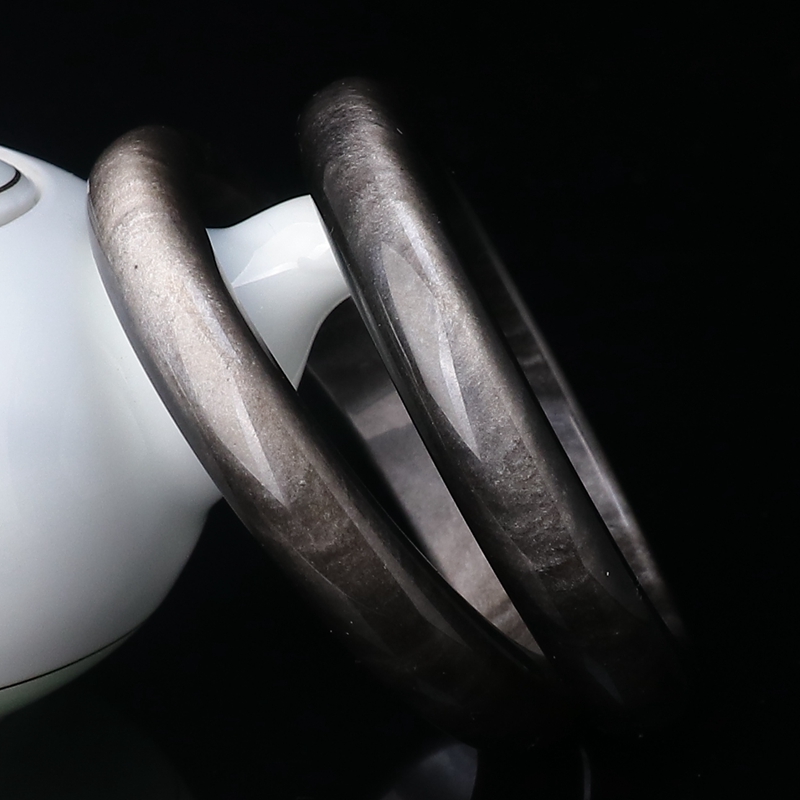 吴老头水晶天然收藏级原矿料黑金银曜石宽条女款捡漏手镯礼物证书