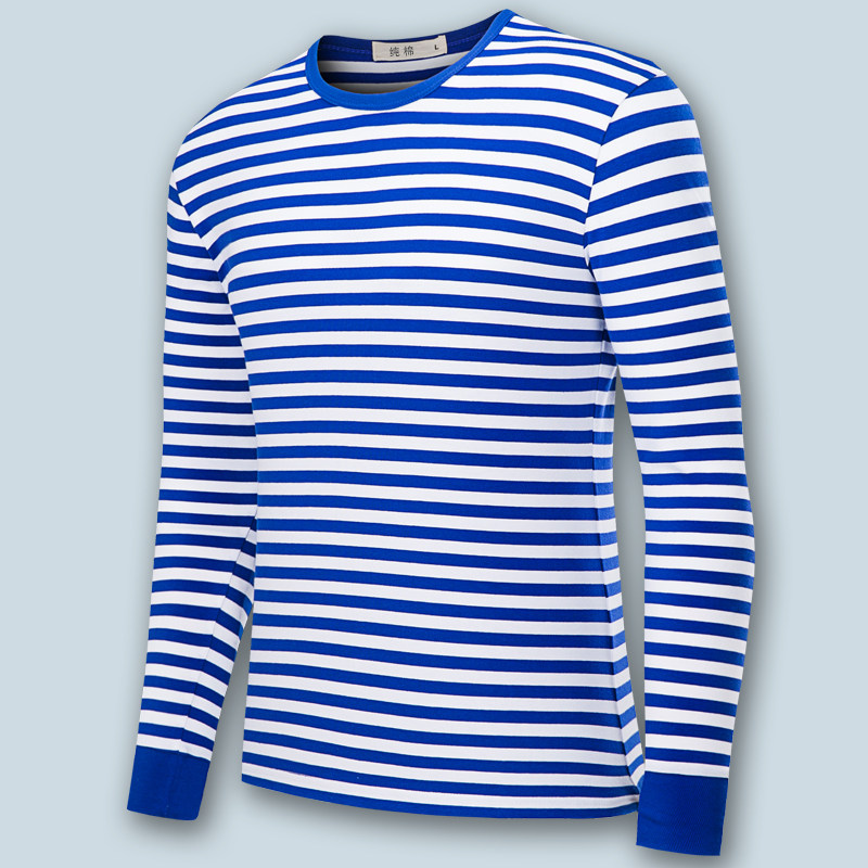 际谦长袖男装海魂衫t恤纯棉复古国货蓝色横条纹春秋款上衣服装潮