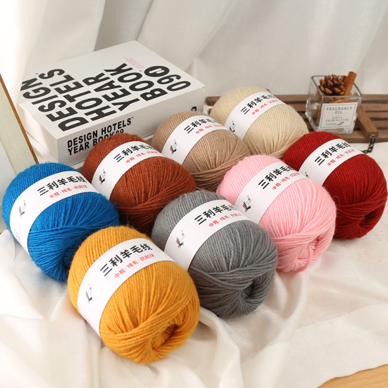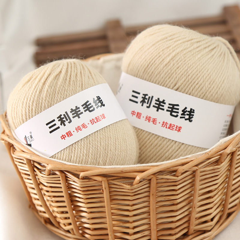 三利毛线羊毛线团粗线手编毛衣线中粗全毛毛线围巾线外套线