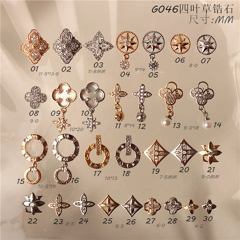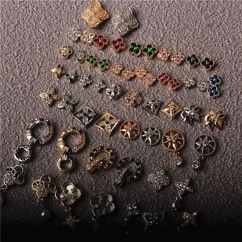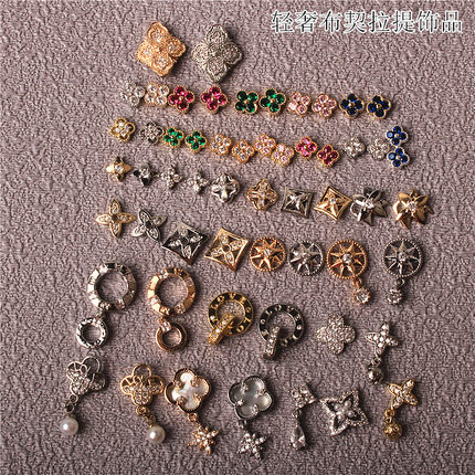 美甲钻锆石金属饰品布契拉提大牌四叶草轻奢指甲配饰字母天使环