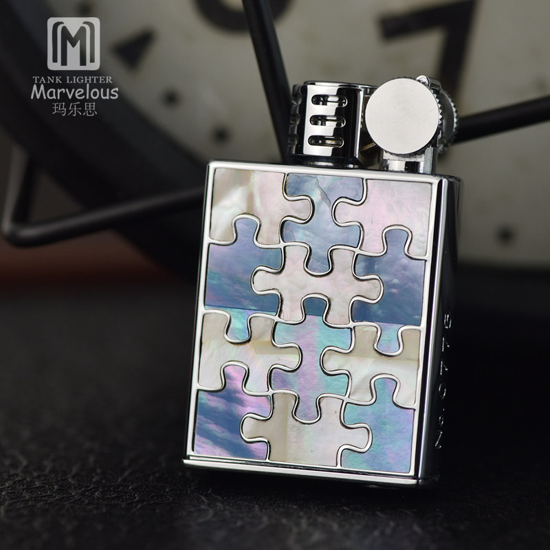 进口原装 玛乐思marvelous砂轮打火机铜材质天然贝壳镶嵌个性火机
