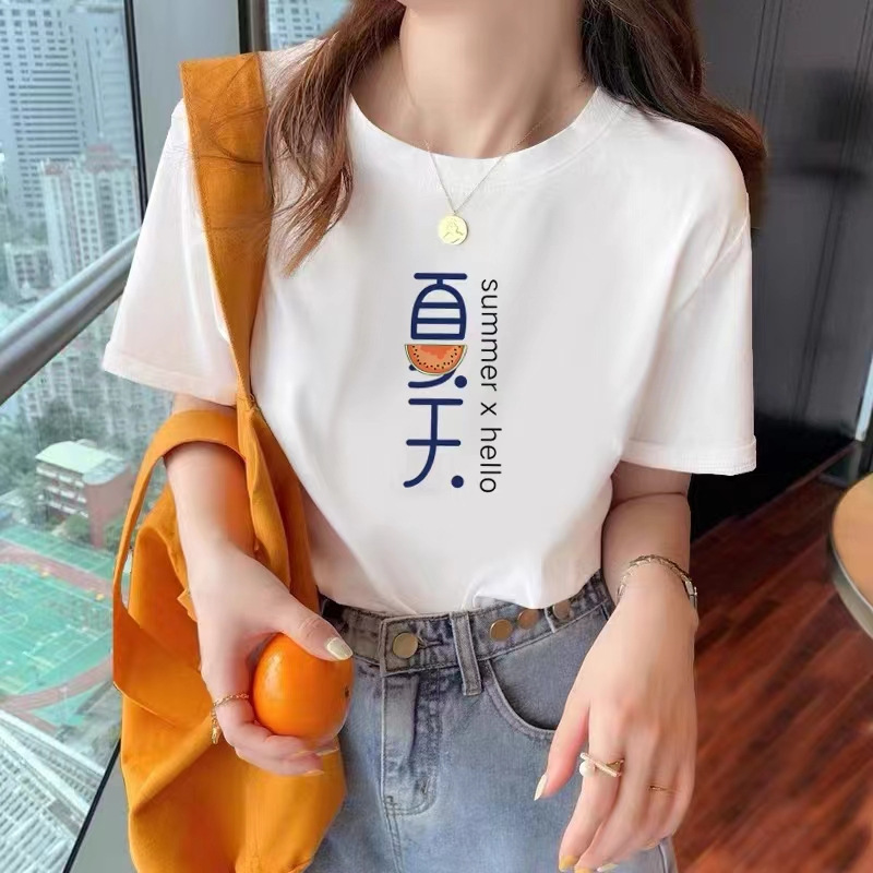 纯棉正肩短袖t恤女上衣2025夏季新款女装宽松内搭白色ins女款