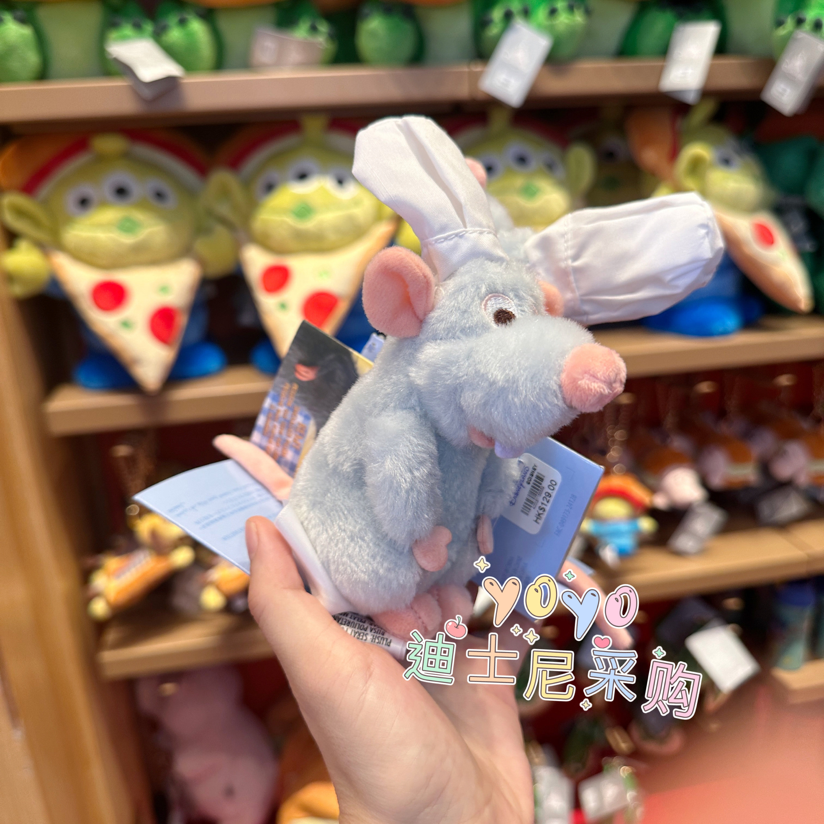 香港迪士尼 美食总动员 料理鼠王毛绒公仔可爱卡通磁吸坐肩厨师鼠