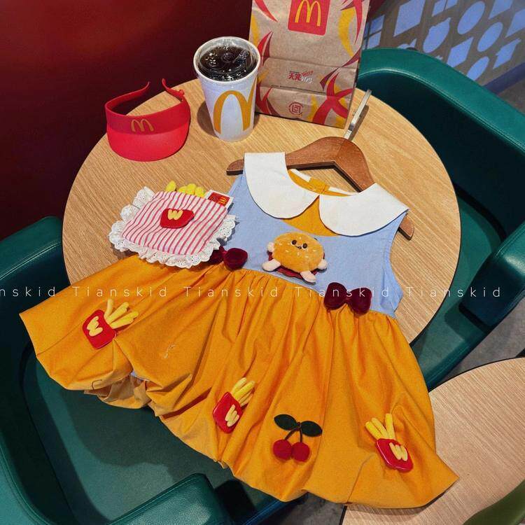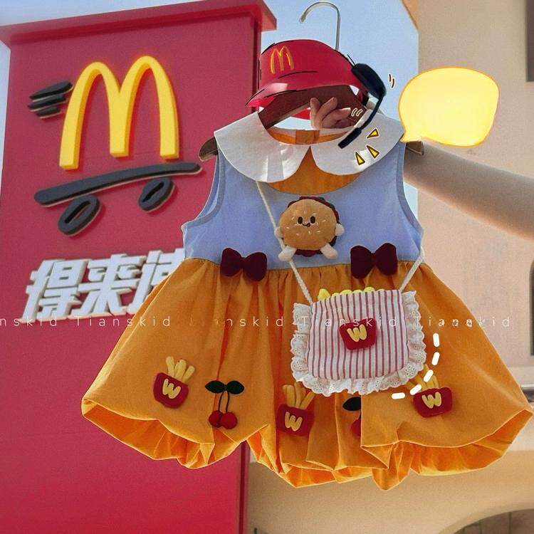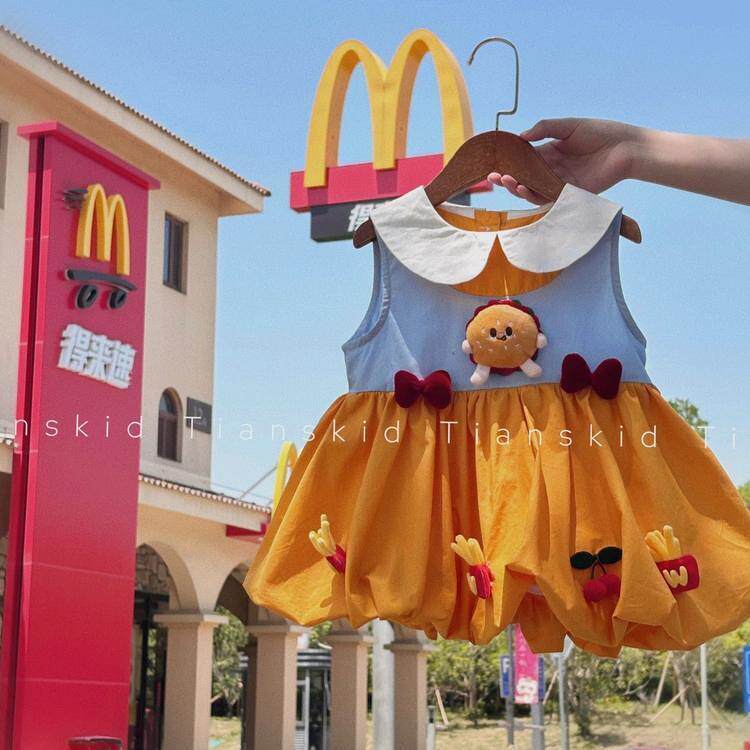 女童连衣裙夏季新款宝宝可爱汉堡背心裙韩版儿童娃娃领花苞公主裙