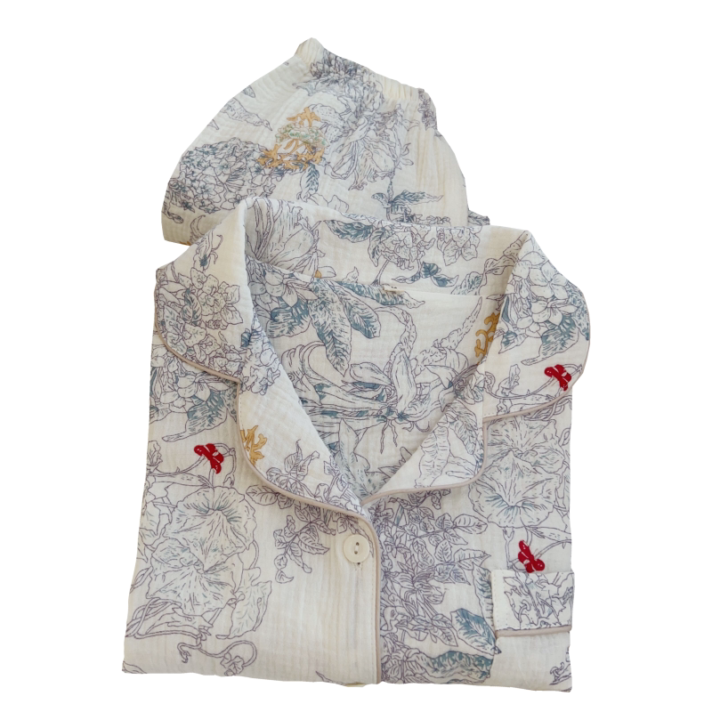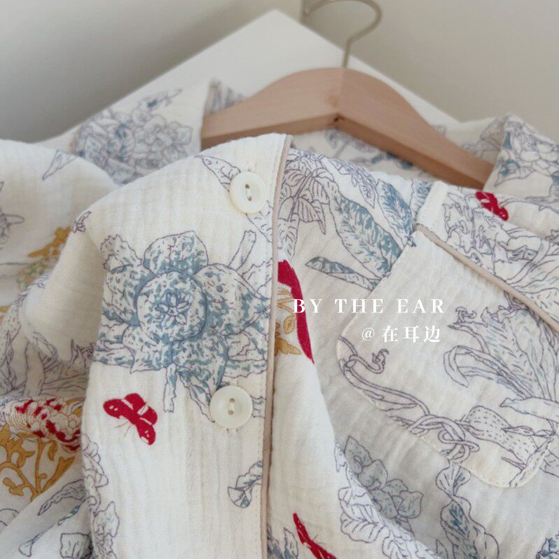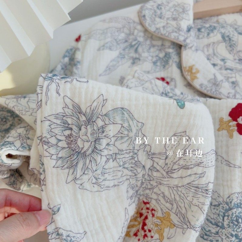 花海|清新春夏季长袖睡衣套装全棉绉布双层棉纱家居服夏天宽松