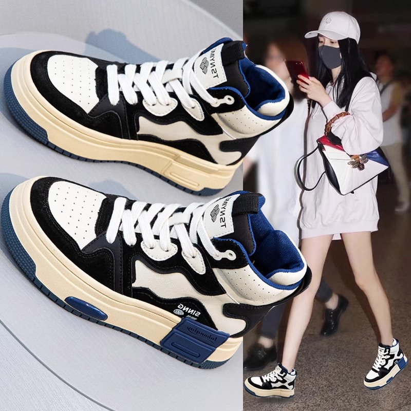 加绒马丁靴女2025新款秋冬季女鞋保暖运动休闲拼色厚底真皮短靴子