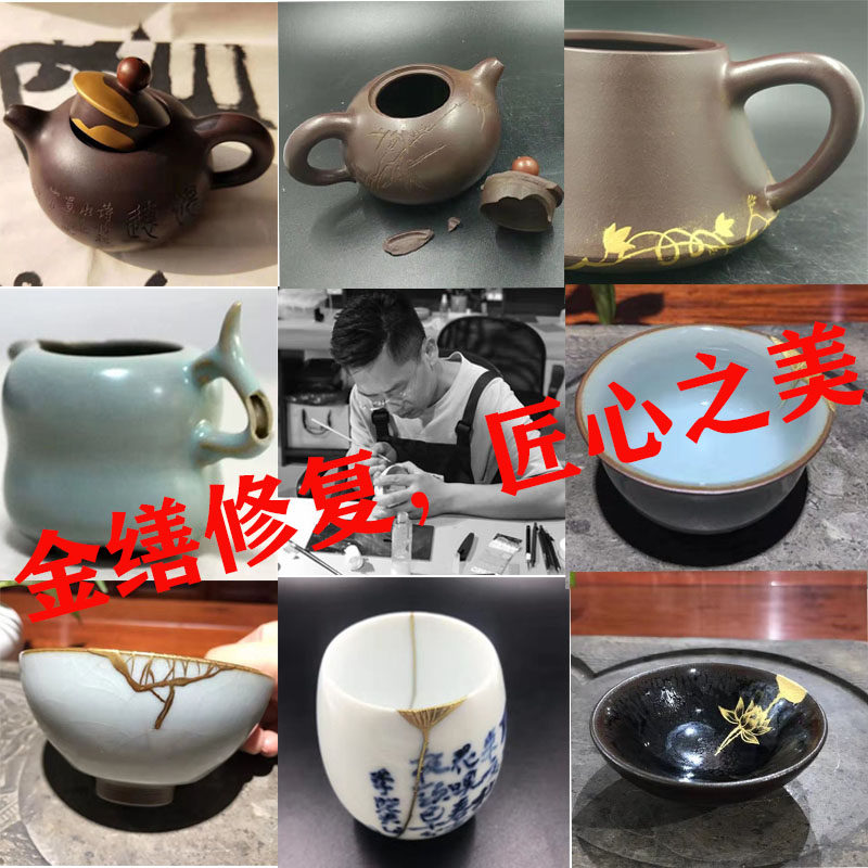 金缮修复修紫砂壶茶杯瓷器古玩建盏文玩无痕修复焗瓷佛像大漆漆器
