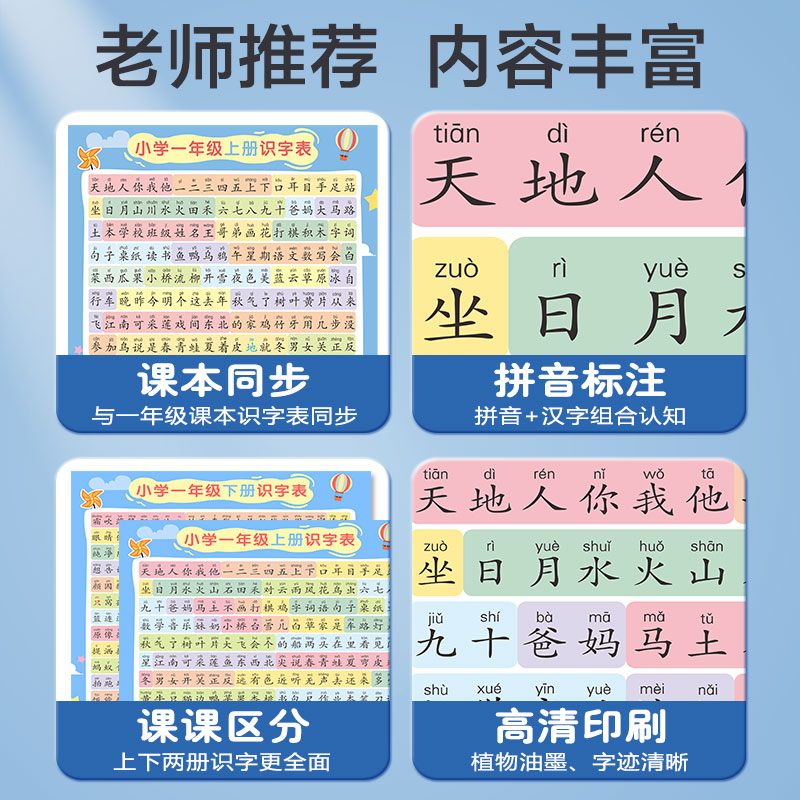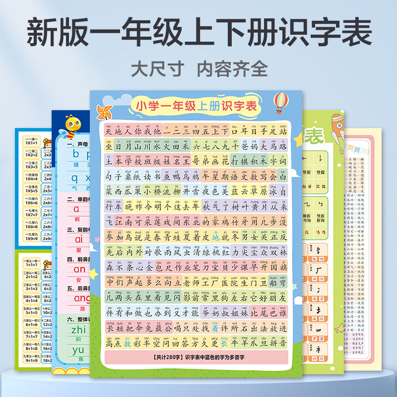 新版一年级识字表 生字表挂图小学生语文上册下册认字人教版墙贴