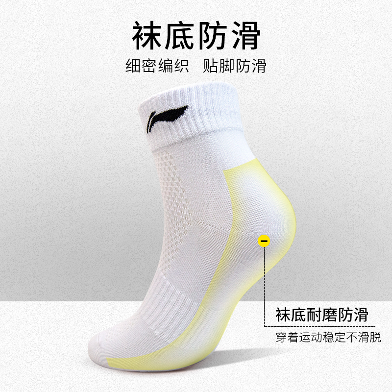 李宁袜子男运动袜女加厚篮球袜中筒跑步袜防滑透气吸汗短袜三双装