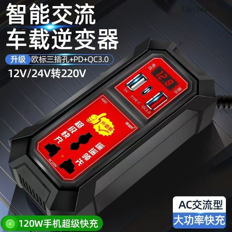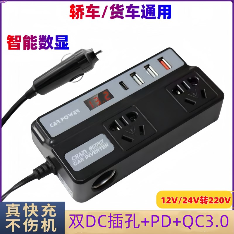 沃邦车载逆变器家用车用户外智能大功率24V转220伏汽车电源转换器