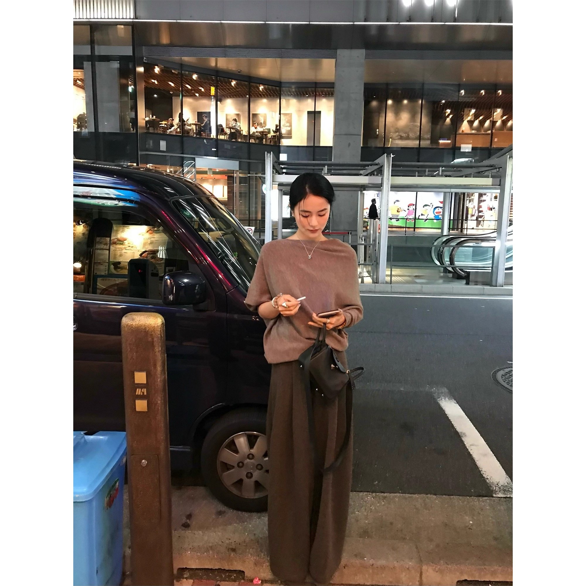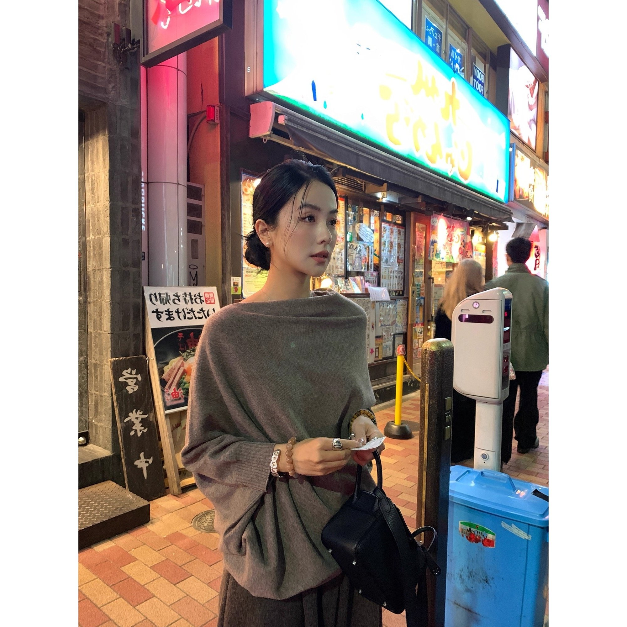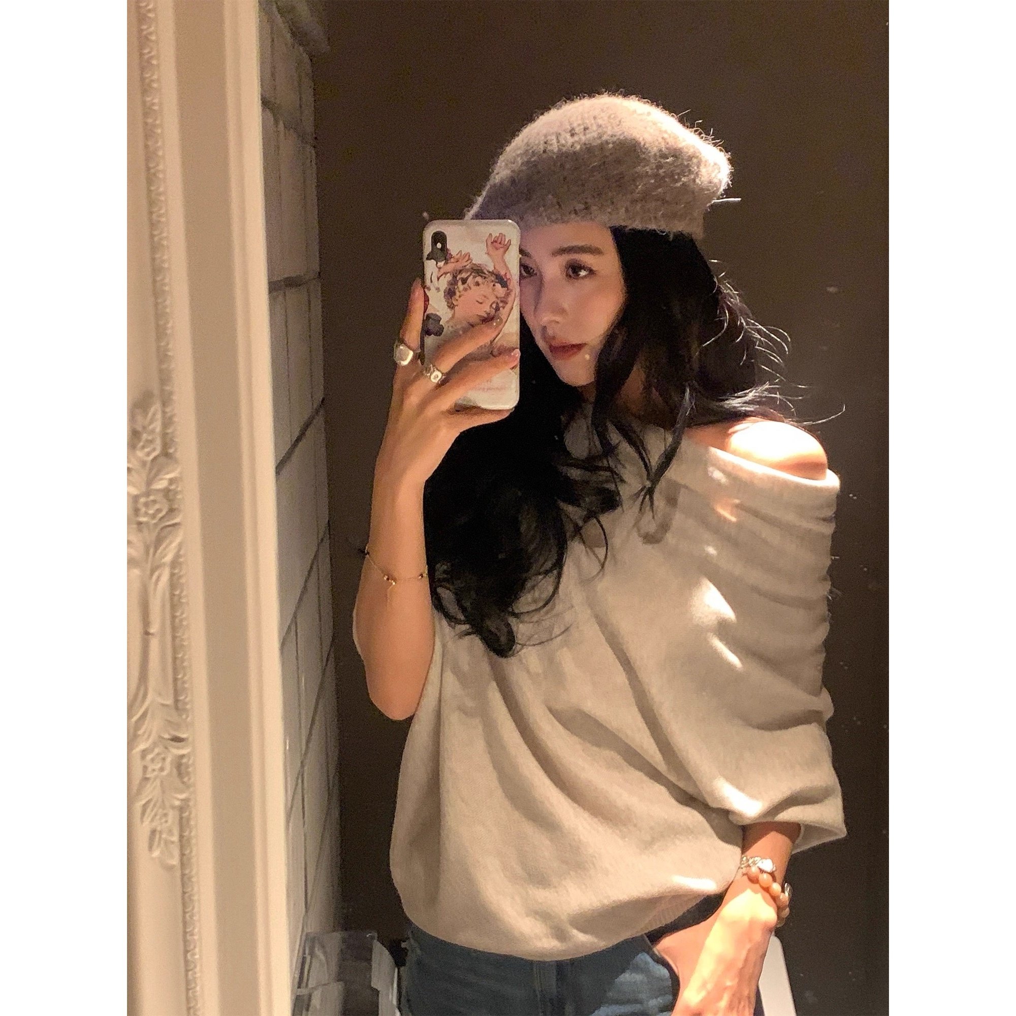 设计感小众不规则中袖套头针织衫毛衣女秋冬新款气质显瘦百搭上衣