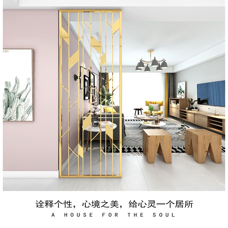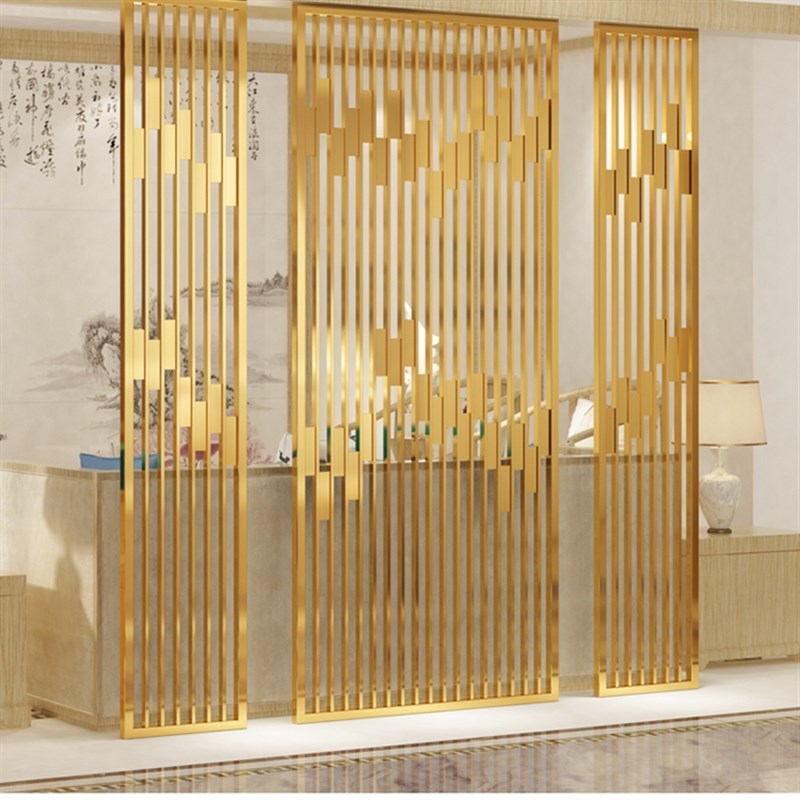 厂销新中式不锈钢隔断屏风简约轻奢金属镂空花格玄关装饰背景造品