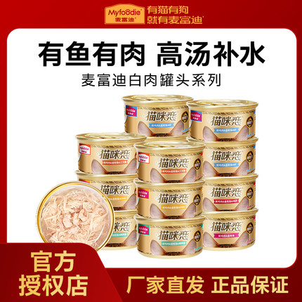 麦富迪猫零食白肉罐头猫条幼猫成猫湿粮包金枪鱼鱼油美毛24罐整箱