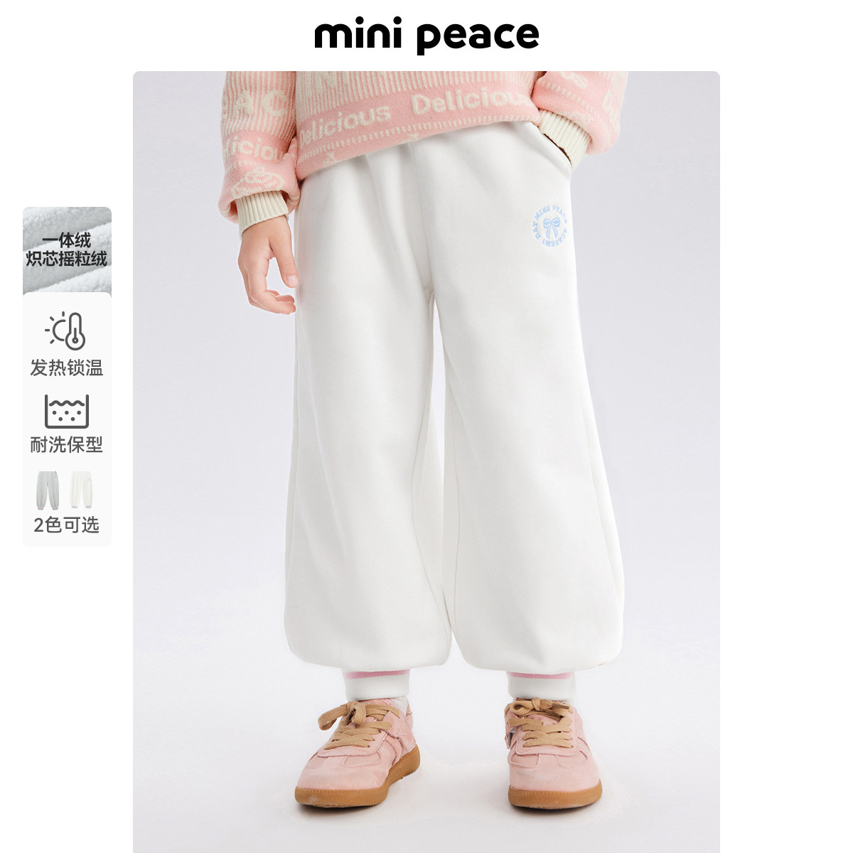 【炽芯热感】太平鸟童装女童裤子冬季一体绒加绒卫裤儿童运动裤女