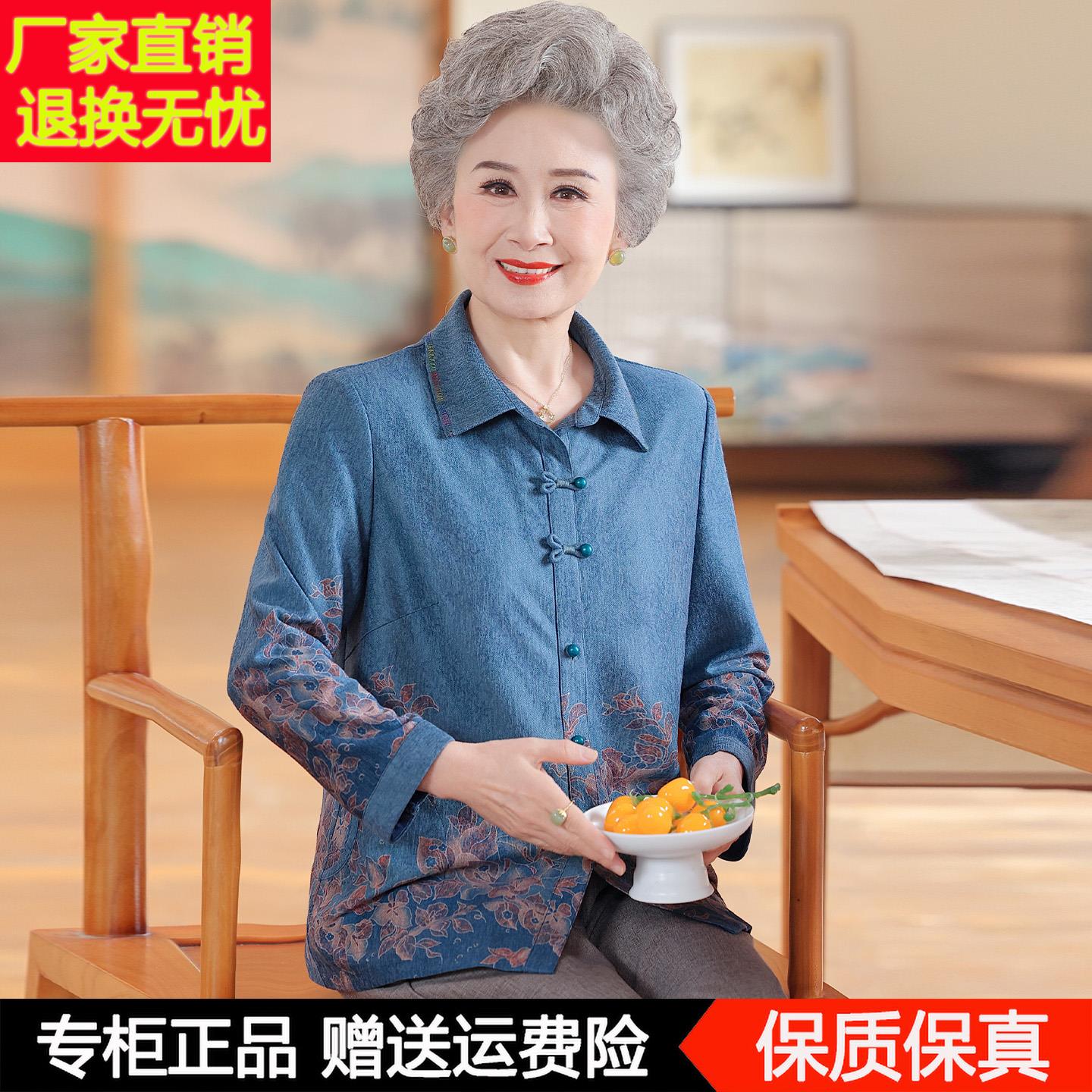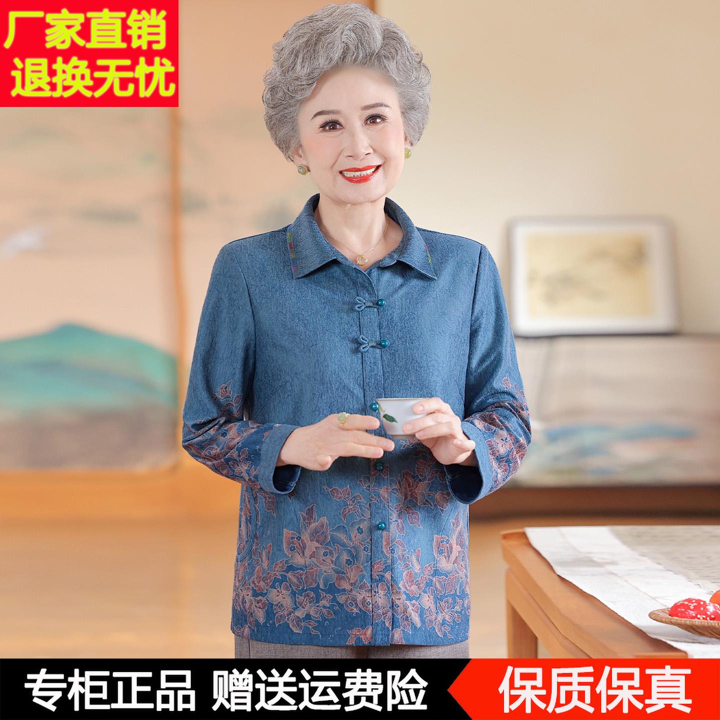 奶奶秋装衬衫长袖上衣老年人妈妈春秋外穿老太太衣服翻领羊毛衬衣