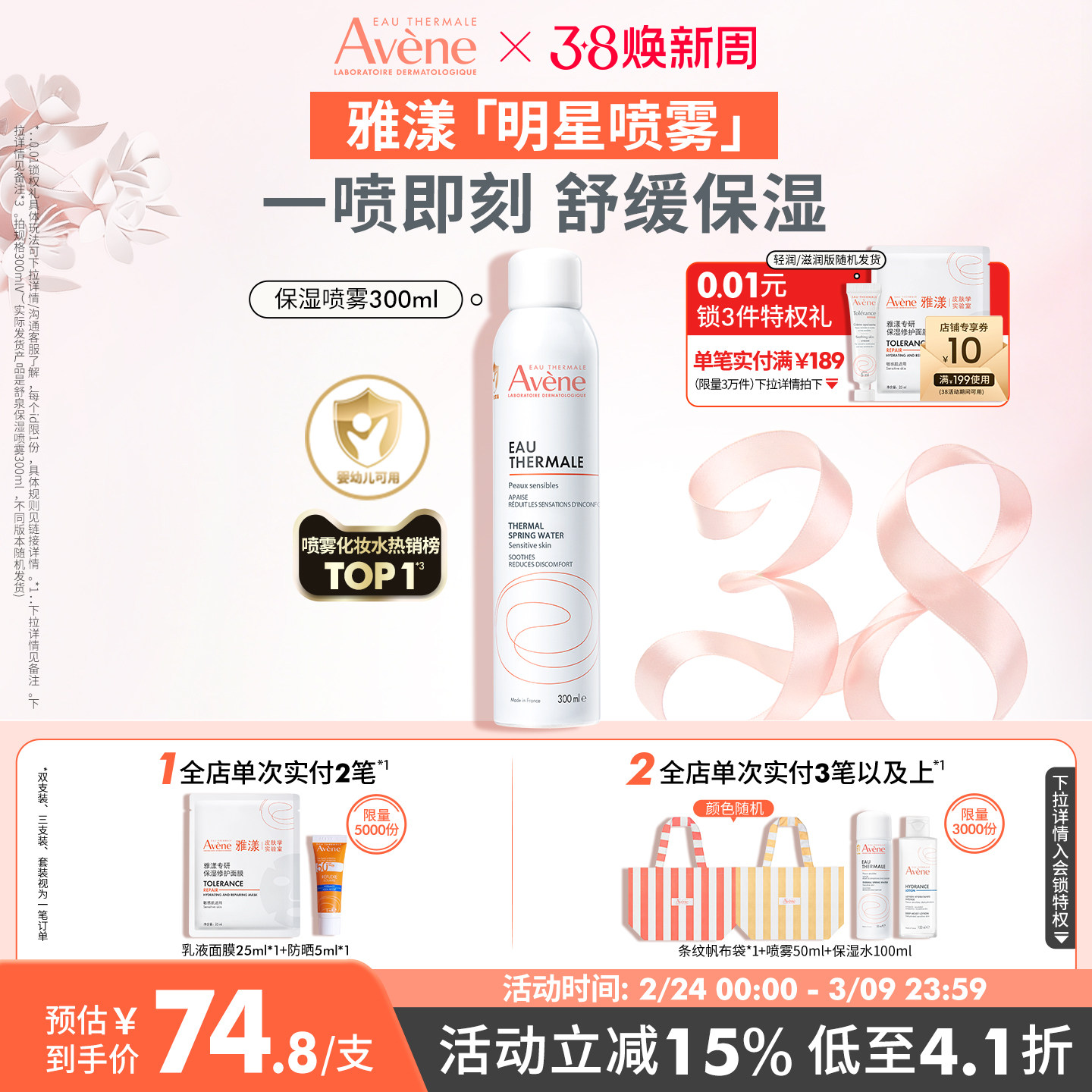 【38节立即购】雅漾舒泉保湿喷雾补水保湿舒缓敏感肌妆前爽肤水