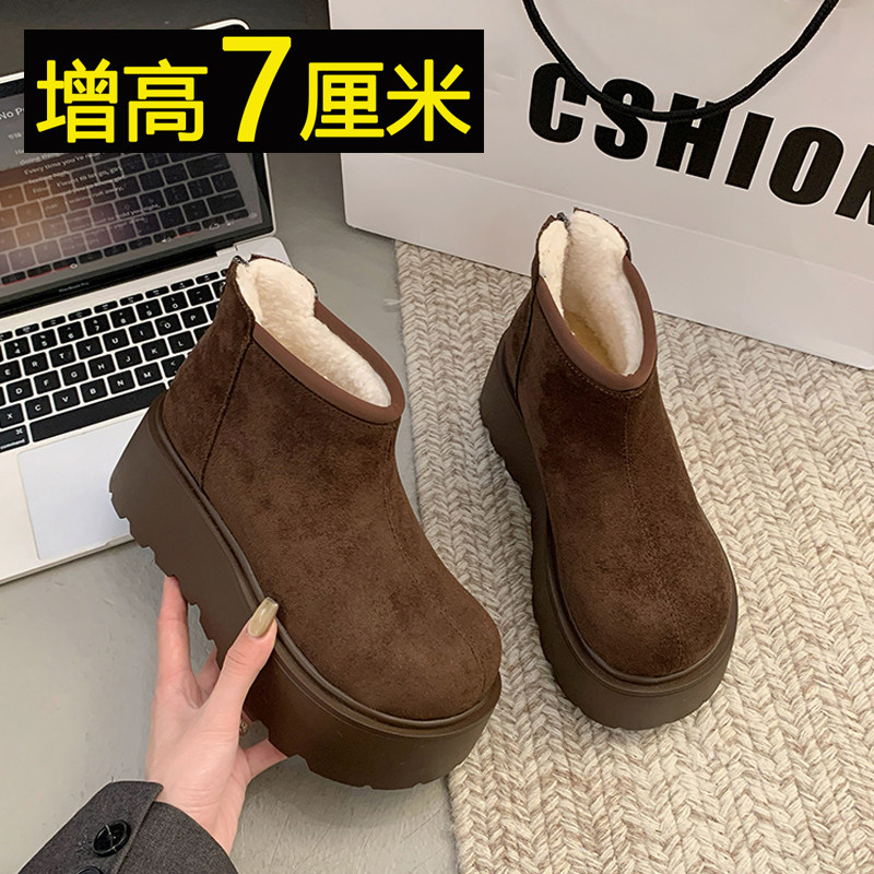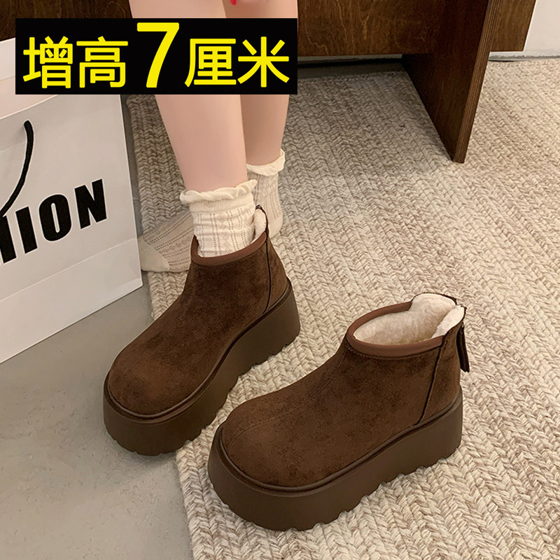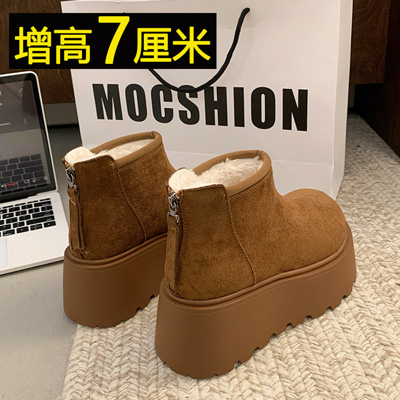 厚底马丁靴女小个子增高加绒棉靴