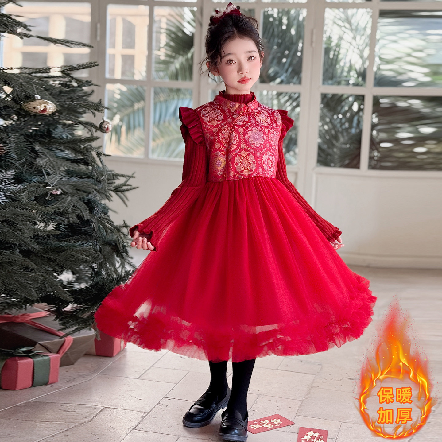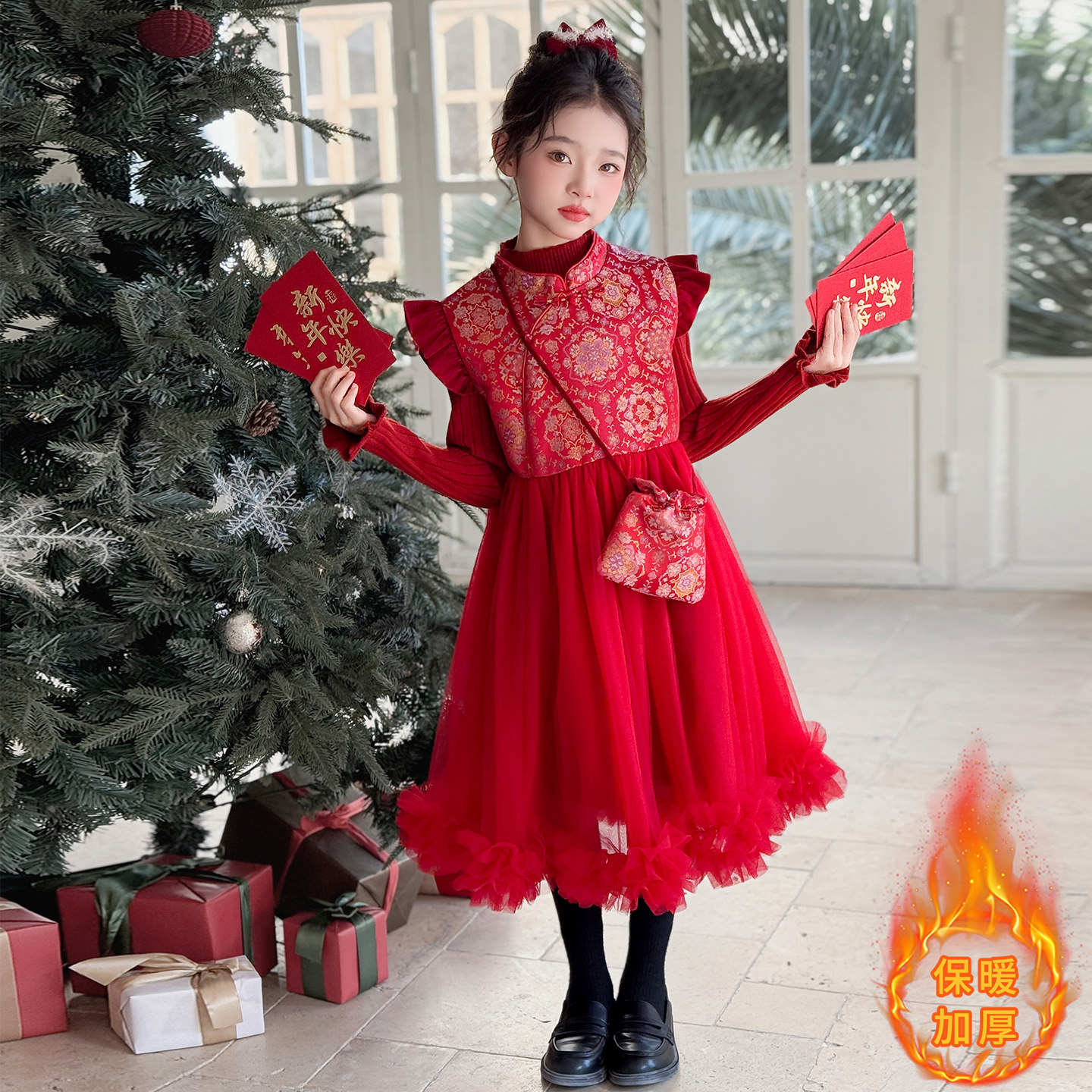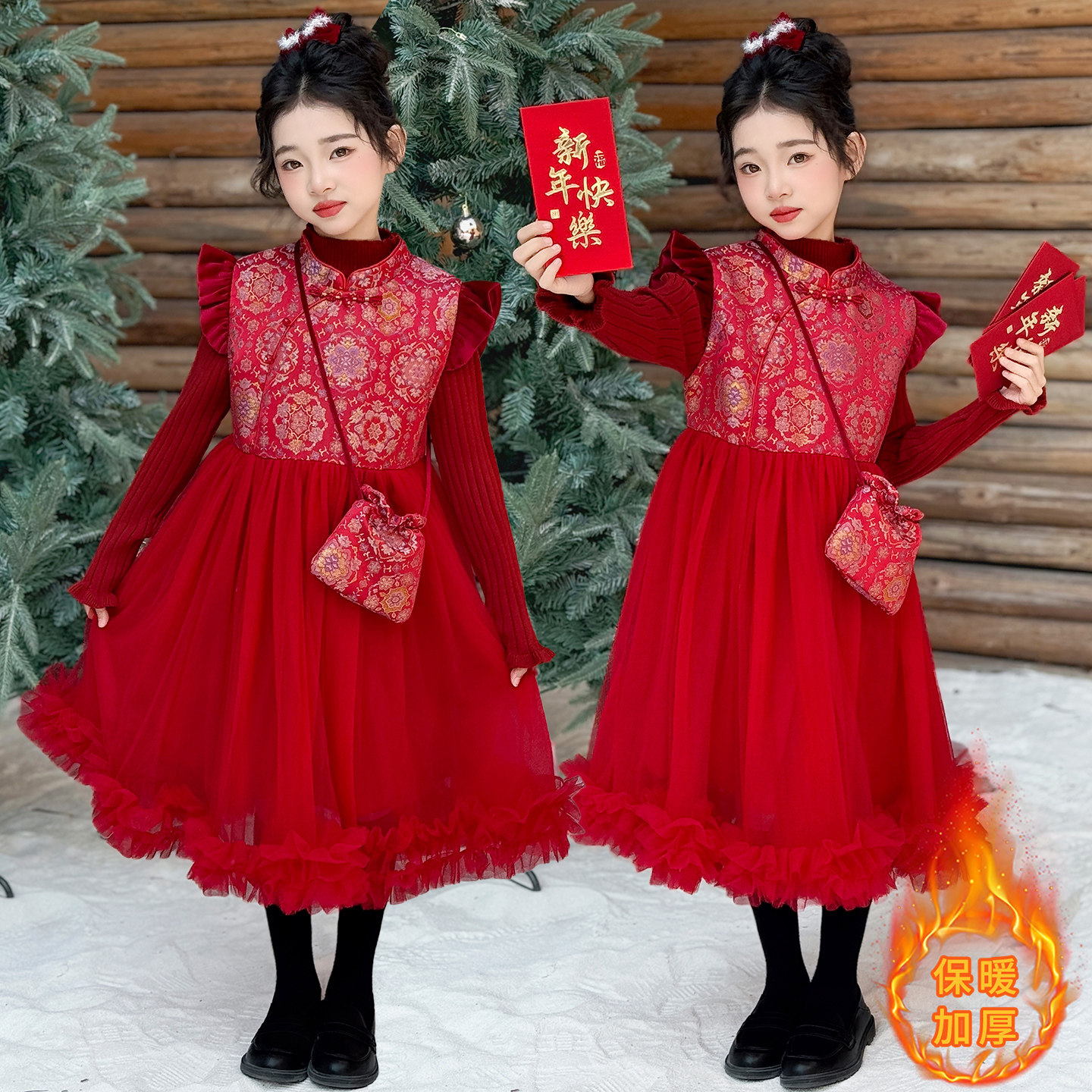 女童连衣裙冬2026新款冬装洋气女中大童公主裙两件套女孩拜年服潮