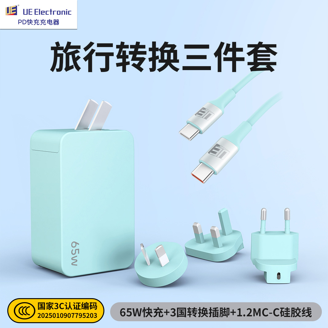 UE 65W氮化镓充电器插头PD快充三口TypeC/USB适用苹果17iPhone16MacBook笔记本电脑iPad平板华为小米手机套装