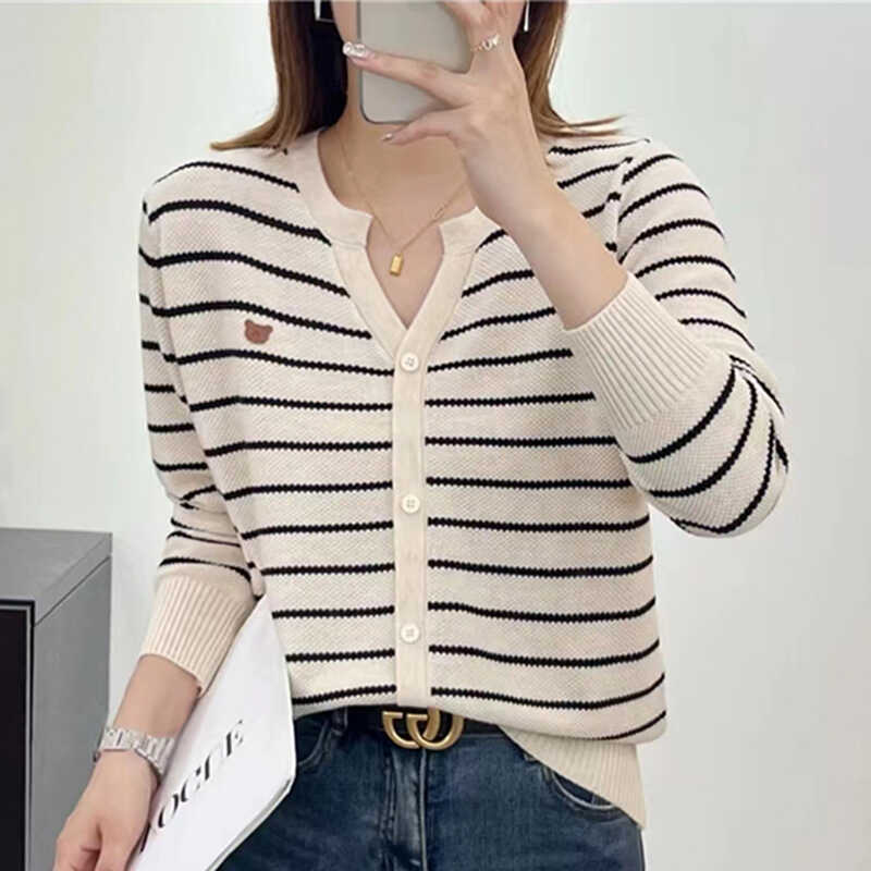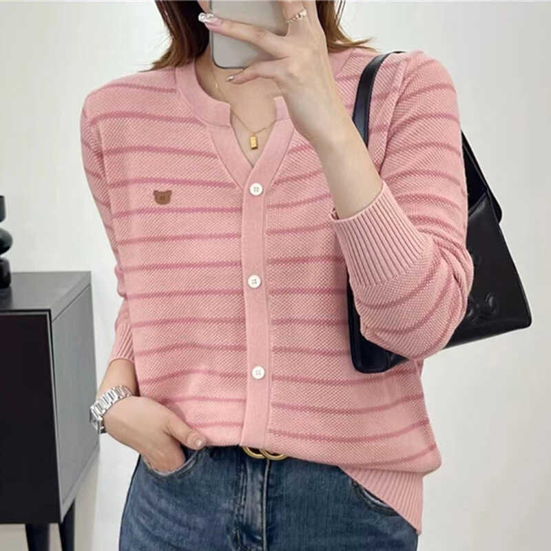 条纹宽松圆领针织衫女长袖内搭春秋2024新款韩版气质百搭打底上衣