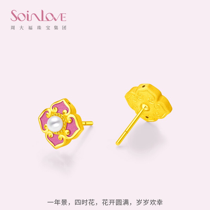 周大福SOINLOVE 岁岁欢幸珍珠黄金耳钉女VR1240圣诞礼物