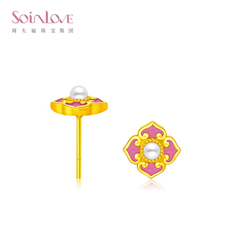 周大福soinlove黄金珍珠耳钉