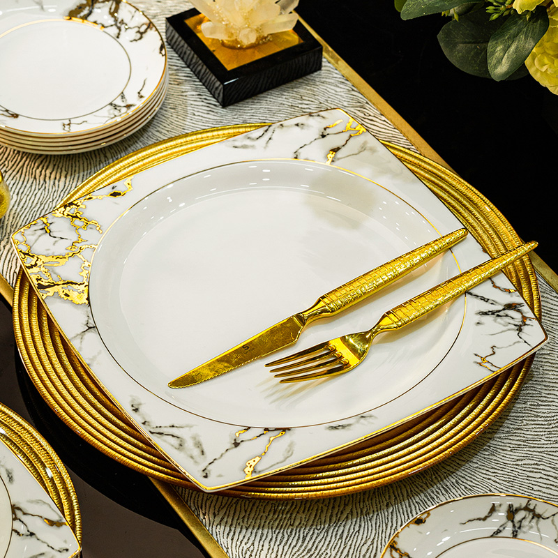 单品骨瓷餐具轻奢高档奢华送礼套碗盘组合欧式陶瓷器碗碟套装家用