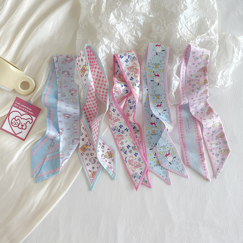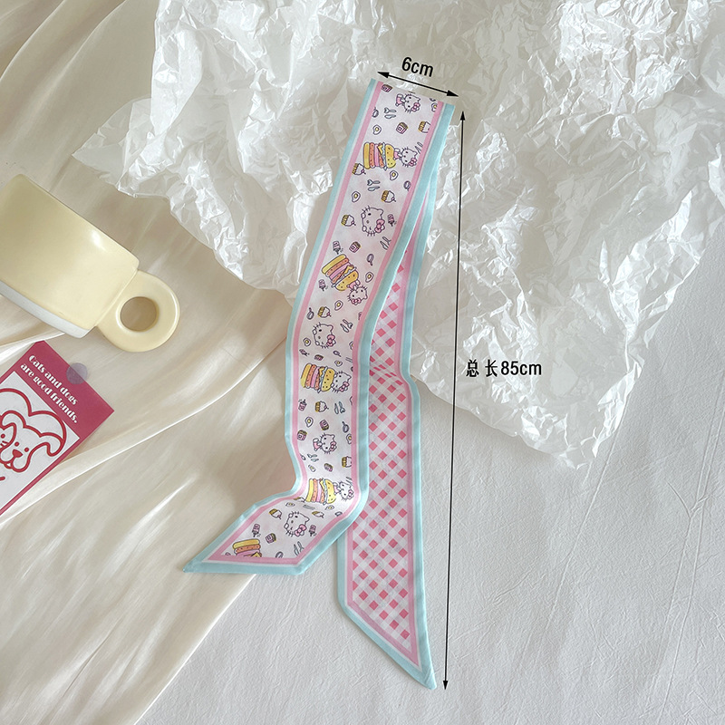 可爱卡通小丝巾斜角小长条窄飘带印花发饰双层布艺发绑包配件饰品
