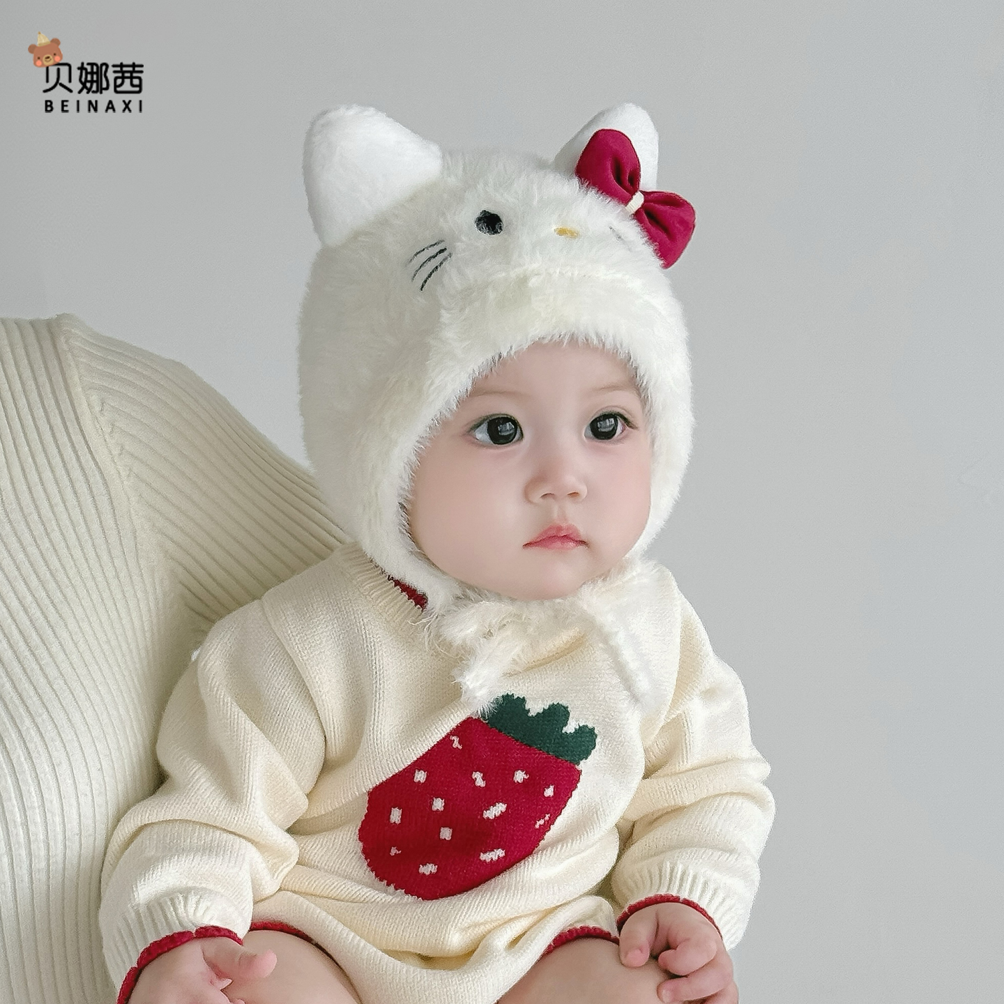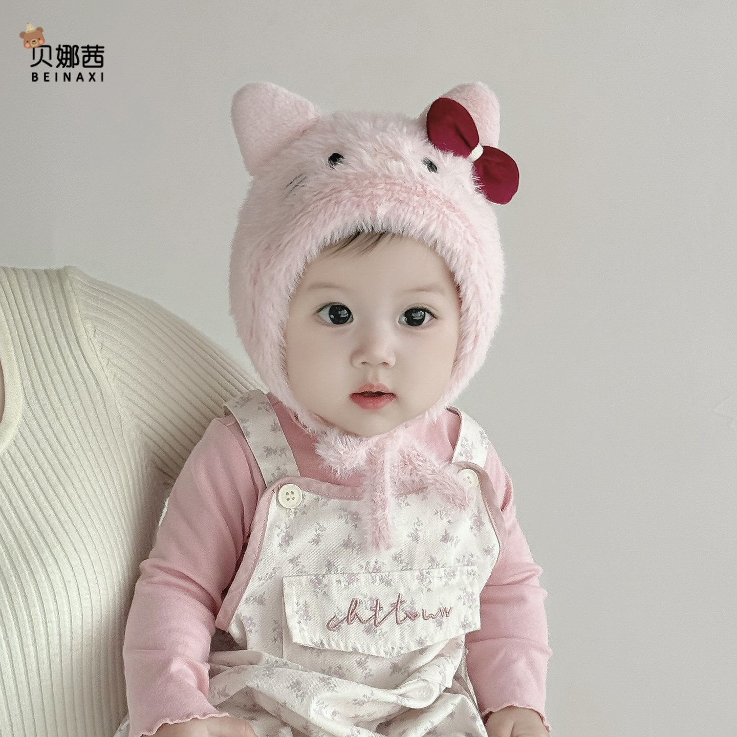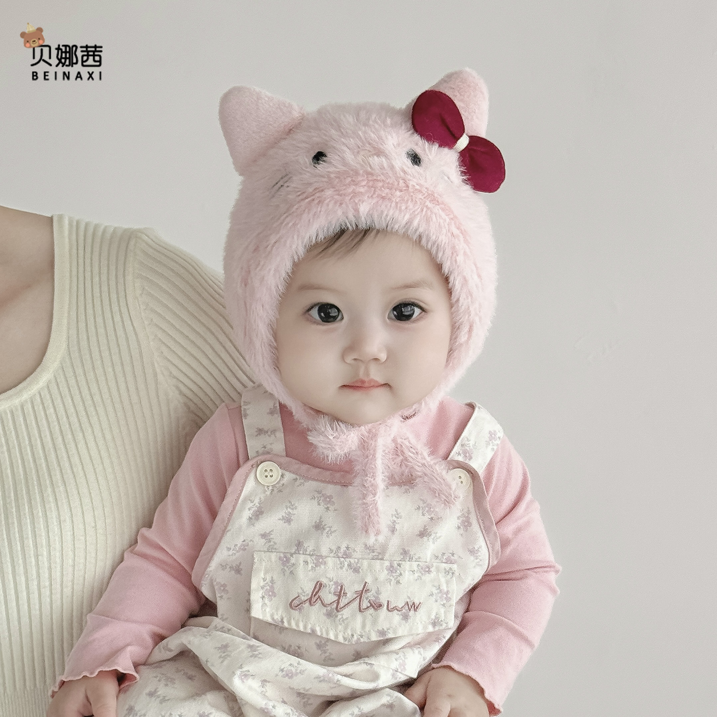 婴儿帽子秋冬季宝宝女卡通毛线帽冬天保暖加厚护耳帽婴幼儿针织帽