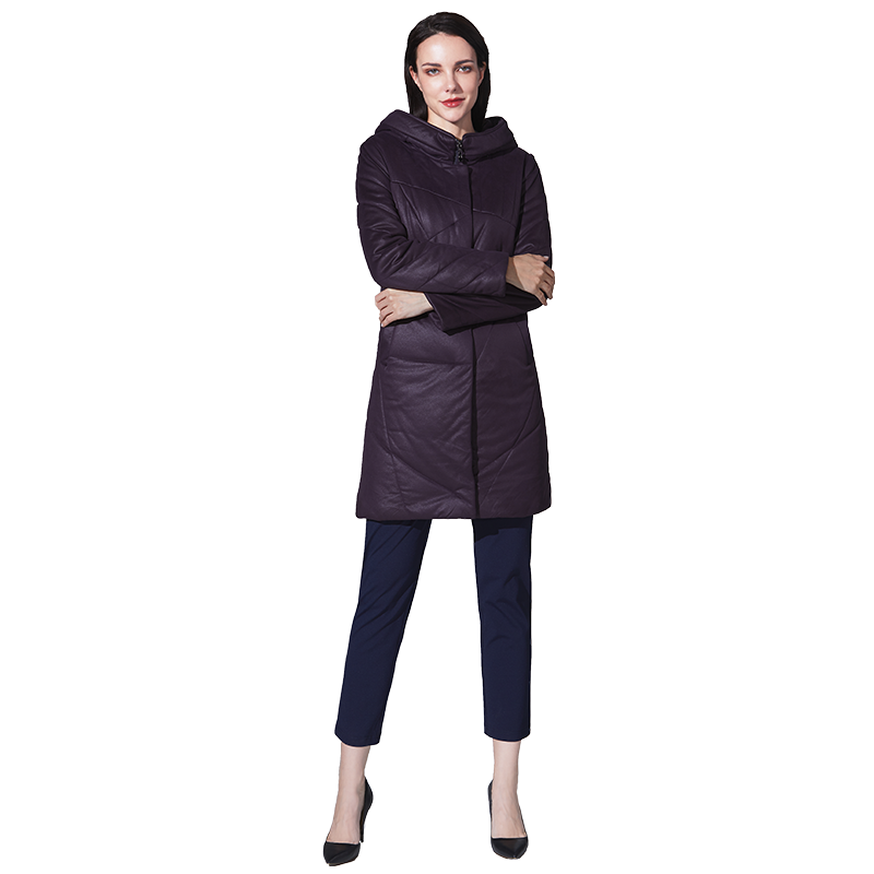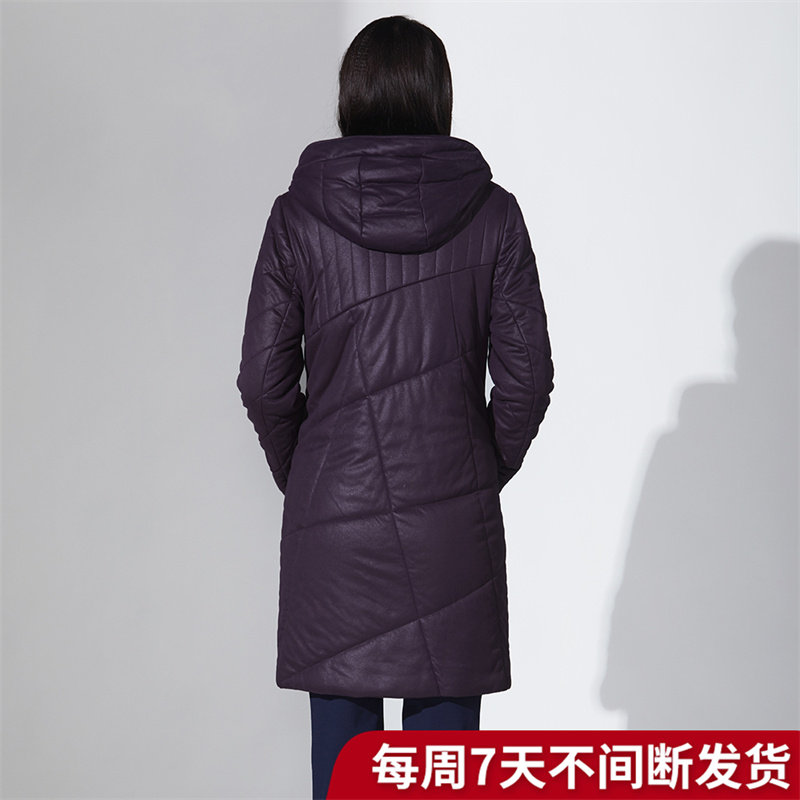 靓诺冬装棉服女连帽紫色中长款棉袄新款女修身棉衣女外套LM16431A