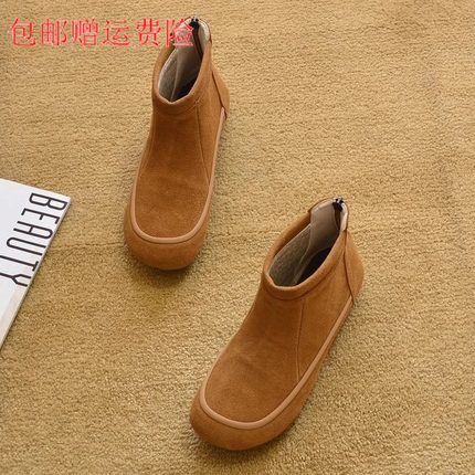 2025新款外贸秋季真皮短靴平底马丁靴单靴圆头时装靴时装靴女靴子