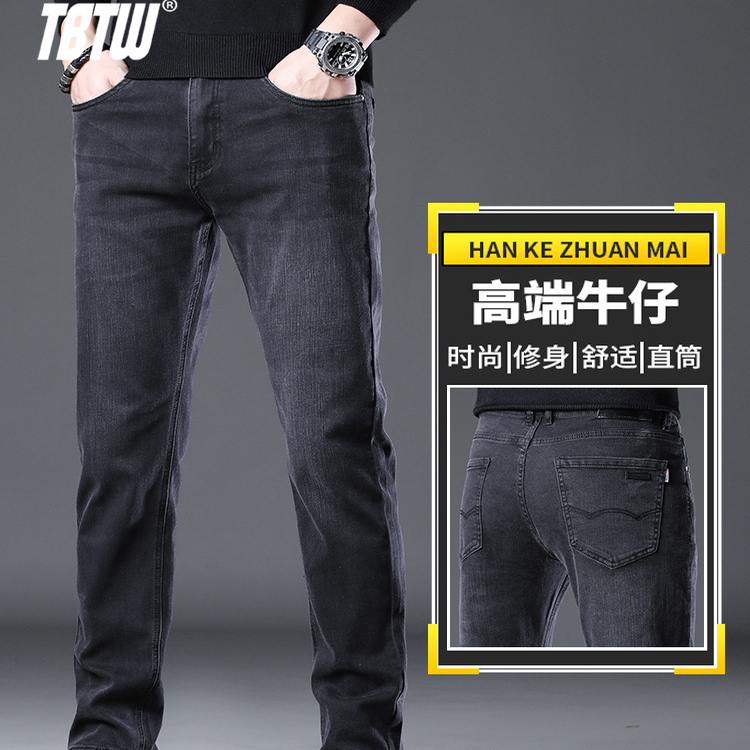 牛仔裤男秋冬2025年新款修身直筒纯色百搭休闲弹力中高腰加绒长裤