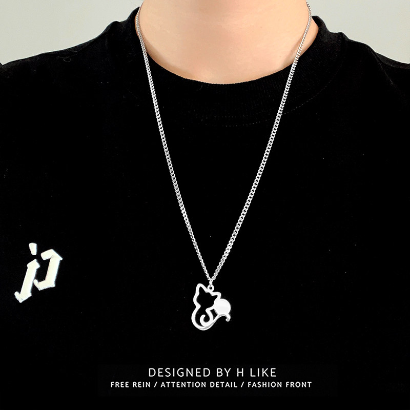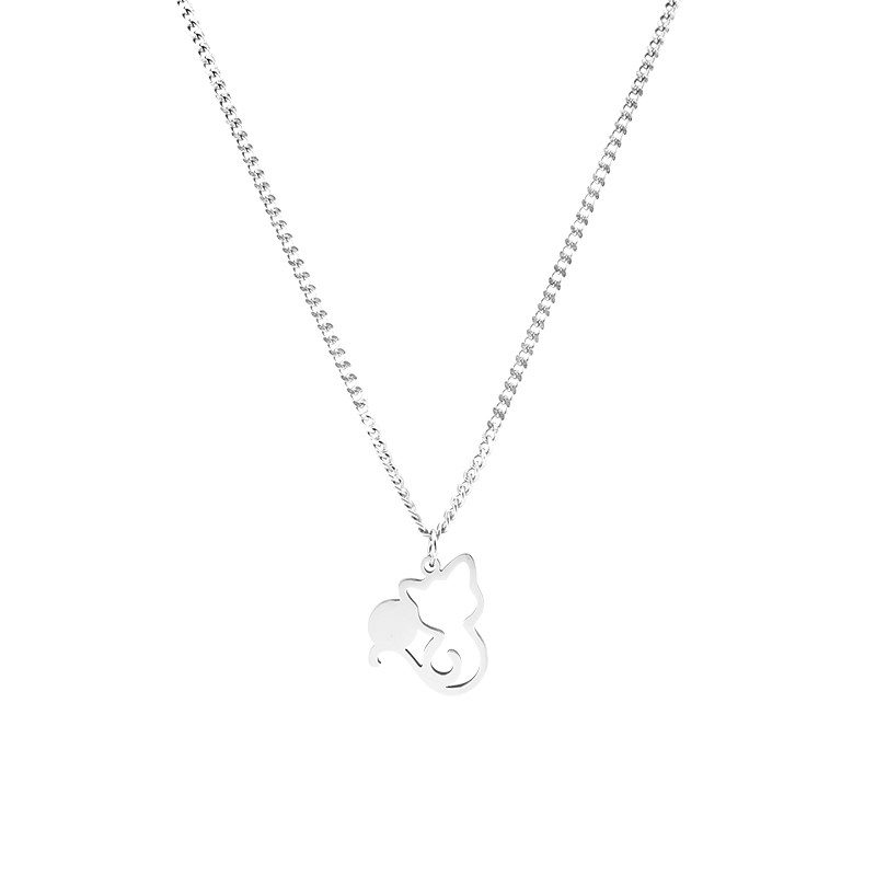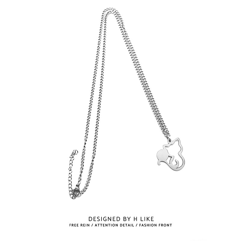 银色镂空小猫项链吊坠饰品钛钢个性链蛇骨短款链男女气质冷淡风潮