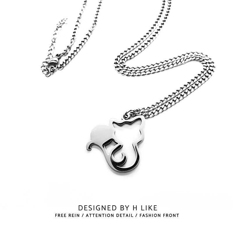 镂空小猫钛钢蛇骨链男女项链吊坠