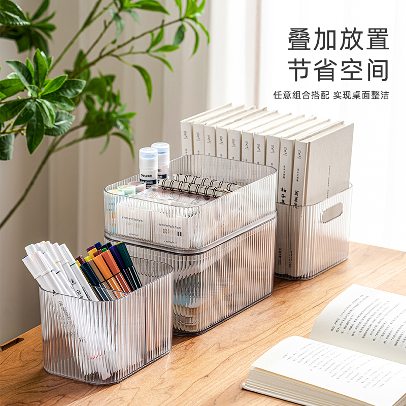 桌面化妆品收纳盒梳妆台带盖面膜护肤品口红整理篮透明带盖杂物篮