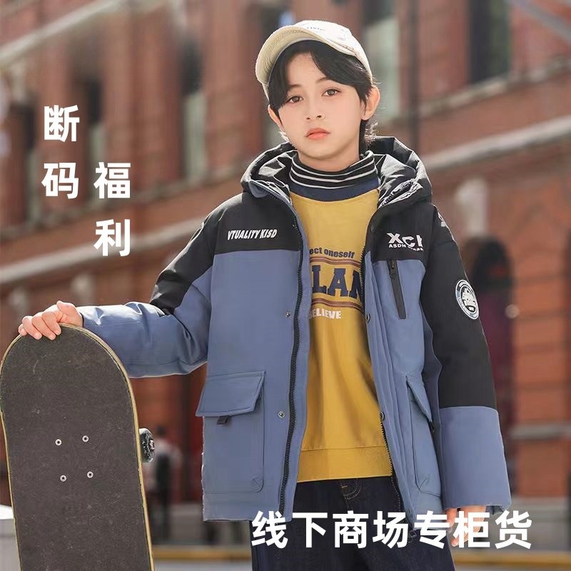ABC儿童羽绒服直播清仓男童中长款保暖衣女童冬季加厚外套白鸭绒