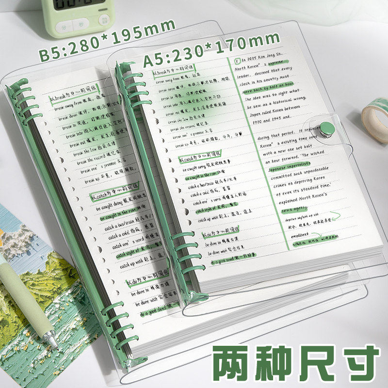 得力b5活页本透明笔记本本子简约软壳pvc软皮外壳可拆卸扣环加厚替芯本子ins透明封面横线手帐本学生日记本