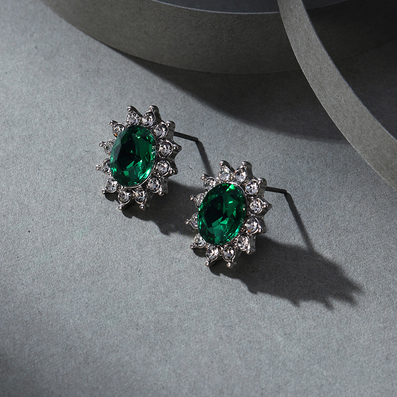 奢华时尚高级感祖母绿富贵花耳钉项链戒指套装超闪气质送妈妈礼物